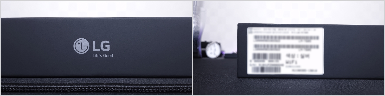 ▲ 패키지 측면에는, LG의 워드마크와 제품 정보 스티커가 부착되어 있습니다.