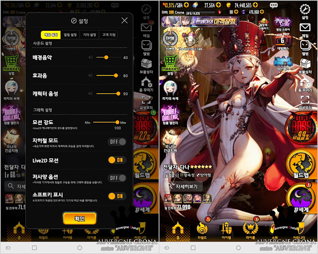 ▲수집형 RPG 장르의 데스티니 차일드입니다. 몇 년 전까지만 해도 굉장히 열심히 플레이하던 게임인데, 수집형이 다 그렇듯 운이 받쳐 주질 않아 도중에 하차한 게임이죠. 오랜만에 생각이 나서 접속해봤습니다. 옵션은 고사양 옵션으로 테스트했으며, 대부분의 전투에서 정말 쾌적한 환경으로 즐길 수 있었습니다. 조작부는 손가락 한 마디가 다 들어갈 정도로 커서 굉장히 편안했고, 무엇보다 자신이 애지중지하는 캐릭터의 전투신을 대화면으로 볼 수 있어서 좋네요. 다만, 월드 보스 레이드나, 엔들리스 듀얼 등 파티 구성이 15인이 넘어가는 전투에서, 일반 배속은 무리 없이 진행되었으나, 2~3배속 자동 전투를 설정하니 버벅임이 발생하는 것을 확인할 수 있었습니다.