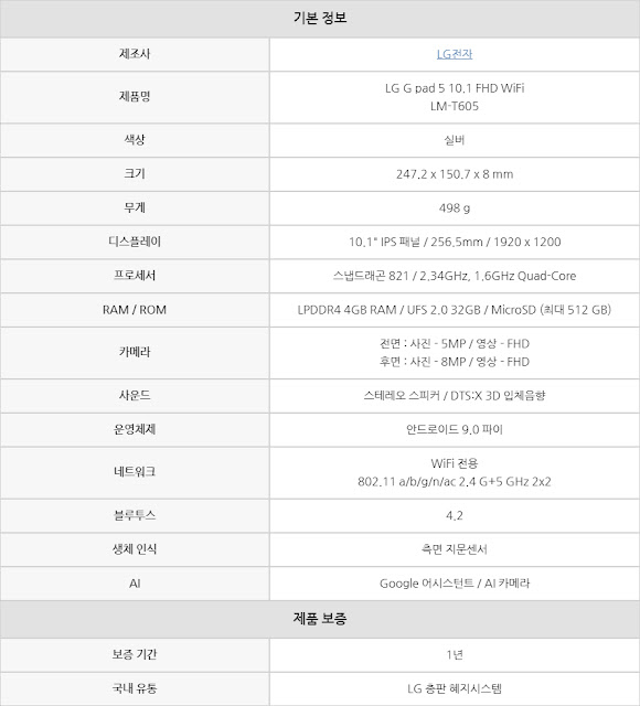 ▲이렇게 해서, WiFi 전용 모델인, LG G패드5 LM-T605를 자세하게 살펴봤습니다. 해당 제품은 WiFi 전용 모델이기 때문에, 이동 중인 상황보다, 정적인 자리에서의 사용이 많은 사용자에게 추천드리는 제품으로, 주로 메인 스마트폰을 사용하고, 서브로 사용하기 안성맞춤입니다. 또한, 사용 목적이, LTE 환경이 필요 없는 사무실 내에서 사용하거나 모니터링 또는 학습용으로 활용하기에 굉장히 좋은 제품으로, LTE 지원 모델 대비 3만원 정도 저렴하고, 두 모델 중에 본인의 사용 목적에 맞춰 선택할 수 있도록 했습니다. 기존에 8.9 인치의 태블릿을 사용하고 있어서, 조금 크지 않을까 생각되었는데, 오히려 10.1인치 정도는 되어야 진짜 태블릿이라고 느껴지는 정도였습니다. 특히, 가독성이나, 화면 레이아웃 등이 매우 쾌적하고, IPS 패널의 색감과 대화면이 어우러져, 시원시원합니다. 활용기를 진행하면서 아쉬웠던 점은 바로 사운드 부분이었는데요. 음질은 스마트폰이나 모니터도 마찬가지지만, 기본 스피커를 잘 사용하지 않기 때문에 평균적이었으나, 스피커의 배치가 불편했습니다. 스마트폰과는 다르게, 제품의 무게나 크기상, 파지해야 하는 부분이 상대적으로 넓기 때문에, 스피커 한쪽이 손바닥에 가려져, 굉장히 아쉬운 사운드를 들려줬고, 그로 인해 게임 중 DTS:X의 기능도 사실상 무의미했습니다. 물론, 스탠드나 거치대를 통해, 음악 및 영상을 감상하는 경우에는 전혀 문제없으며, 파지했을 때 발생하는 구조상의 문제이기 때문에, 자신이 어떠한 목적으로, 어떠한 상황에서 사용할지를 고려하여 구매한다면 만족스러운 선택이 될 것 같네요. 저는 모바일 게임을 주로 하지 않기도 하지만, 한다고 해도 이어폰이나 블루투스 이어폰, 사운드바 등을 통해 즐기기 때문에, 정말 만족스러운 퍼포먼스와 가격대의 제품이었습니다. LG의 태블릿은 이번 기회에 처음 알게 되었고, 충분히 고려해봄직한 성능을 보였기 때문에, 할인행사나, 사은품 행사를 통해 좀 더 노출이 많이 되었으면 하는 제품이네요.