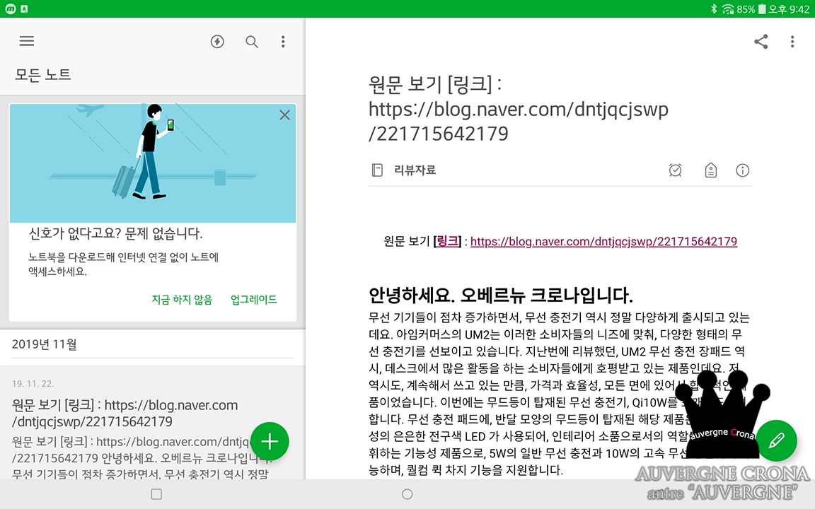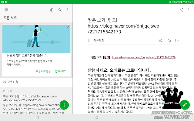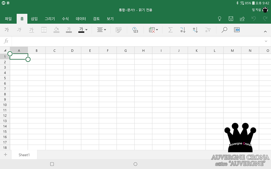 ▲엑셀파일의 경우, A1 셀부터 O18 셀까지 한눈에 들어오는 크기로, 굉장히 작업 공간이 넓습니다. 저는, Evernote 애플리케이션을 사용하고 있는데, 가로로 눕혔을 때, 레이아웃 배치가 참 맘에 드네요. 가독성도 굉장히 좋습니다.