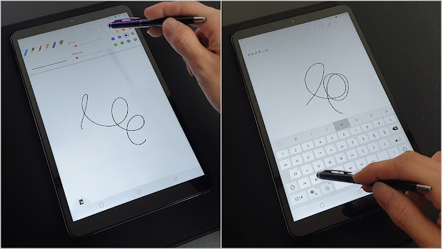 ▲또한, Q 메모 기능을 통해, 빠르게 필기와 메모를 진행할 수 있습니다. 화면을 캡처한 후 그 위에도 필기가 가능하고, 일반 메모지에도 가능합니다. 다소 아쉬운 점은, 전용 터치펜을 판매하고 있지 않기 때문에, 별도의 정전식 터치펜을 구매하셔야 한다는 점입니다. 개인적으로, G패드의 디자인과 어울리는 색상의 얄상한 터치펜이 좀 나와줬으면 하네요.