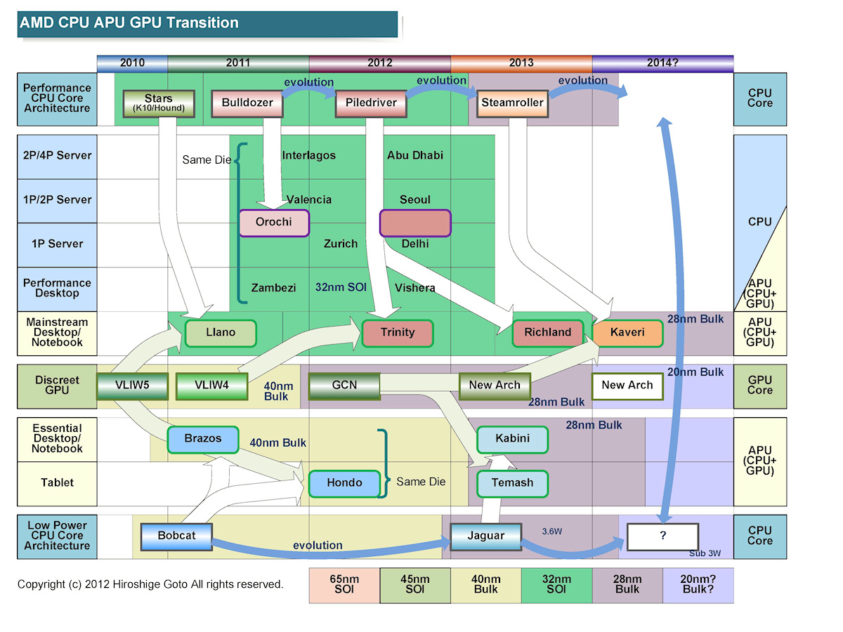 AMD의 K10, Bulldozer, Bobcat, Jaguar 코어 크기