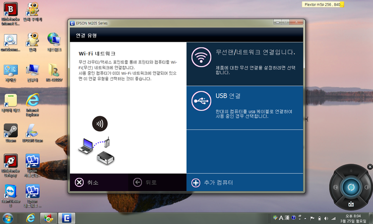 설치하기전 연결 유형을 물어보는데 USB 연결을 통하여 하실분들은 USB를 선택하시면 되고 , 무선랜 이나 네트워크로 연결하여