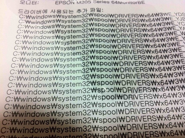 M205로 인쇄한 인쇄물에 물을 부었습니다. 전혀 번지는 것이 없군요. 아예 번질 생각을 안합니다.