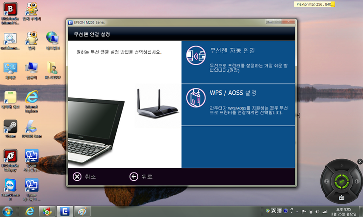 무선랜/네트워크 연결을 선택하시면 아래 사진과 같이 무선랜 자동연결 , WPS/AOSS 설정 창이 나옵니다.