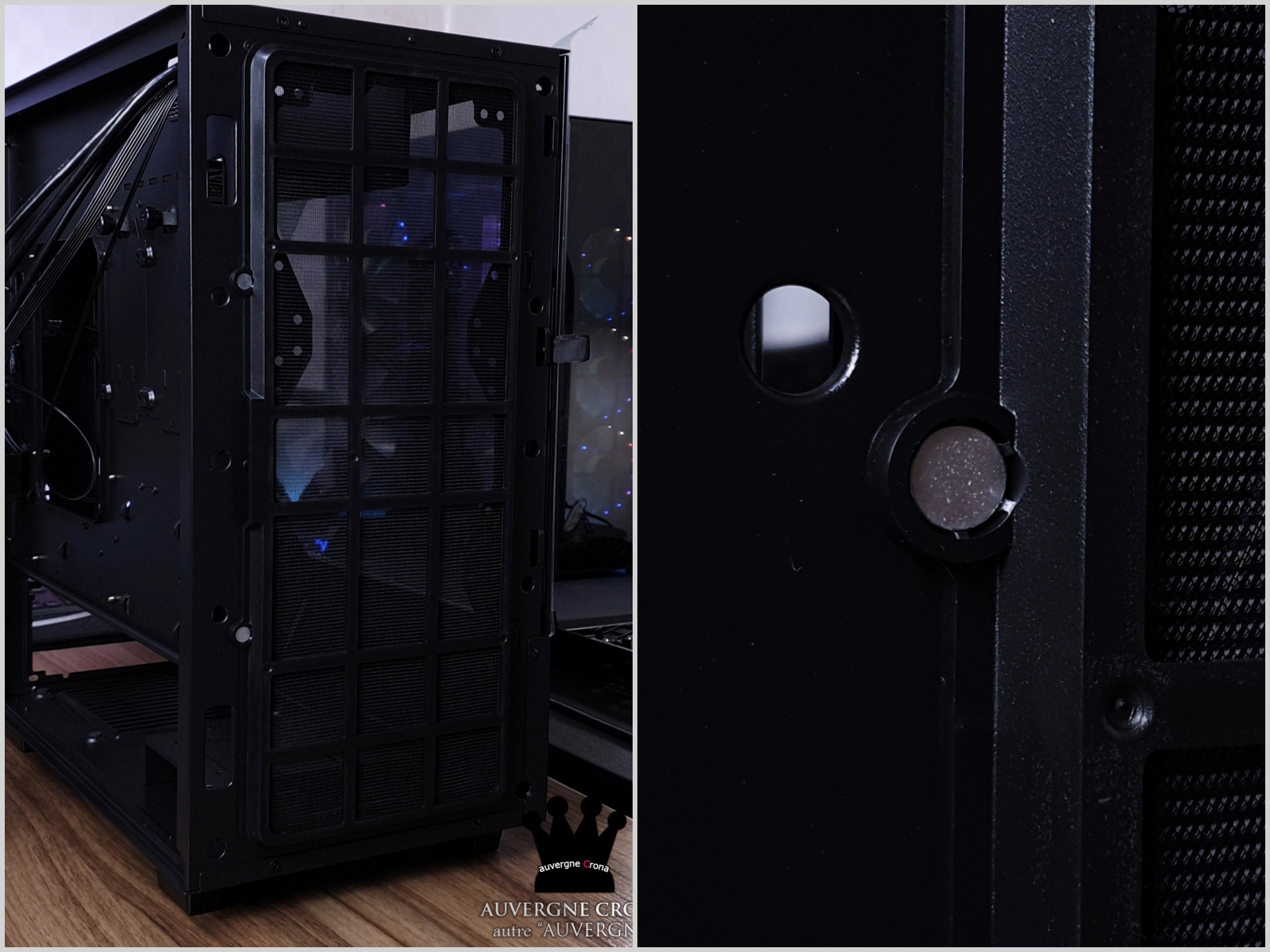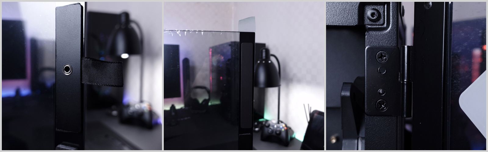 ▲ 우측면의 강화유리 패널은, 경첩이 장착되어 있는 여닫이 방식의 패널이 사용되었는데요. 덕분에 더욱 간편하게 내부 부품을 조립할 수 있고, 손잡이가 구비되어 있어, 개폐가 용이합니다. 또한 접합 부분에는 마그네틱이 부착되어 있어, 닫을 때 역시 힘들이지 않고 편하게 닫을 수 있죠. 이런 사소한 부분에서 느껴지는 사용자에 대한 배려가 남다르네요.