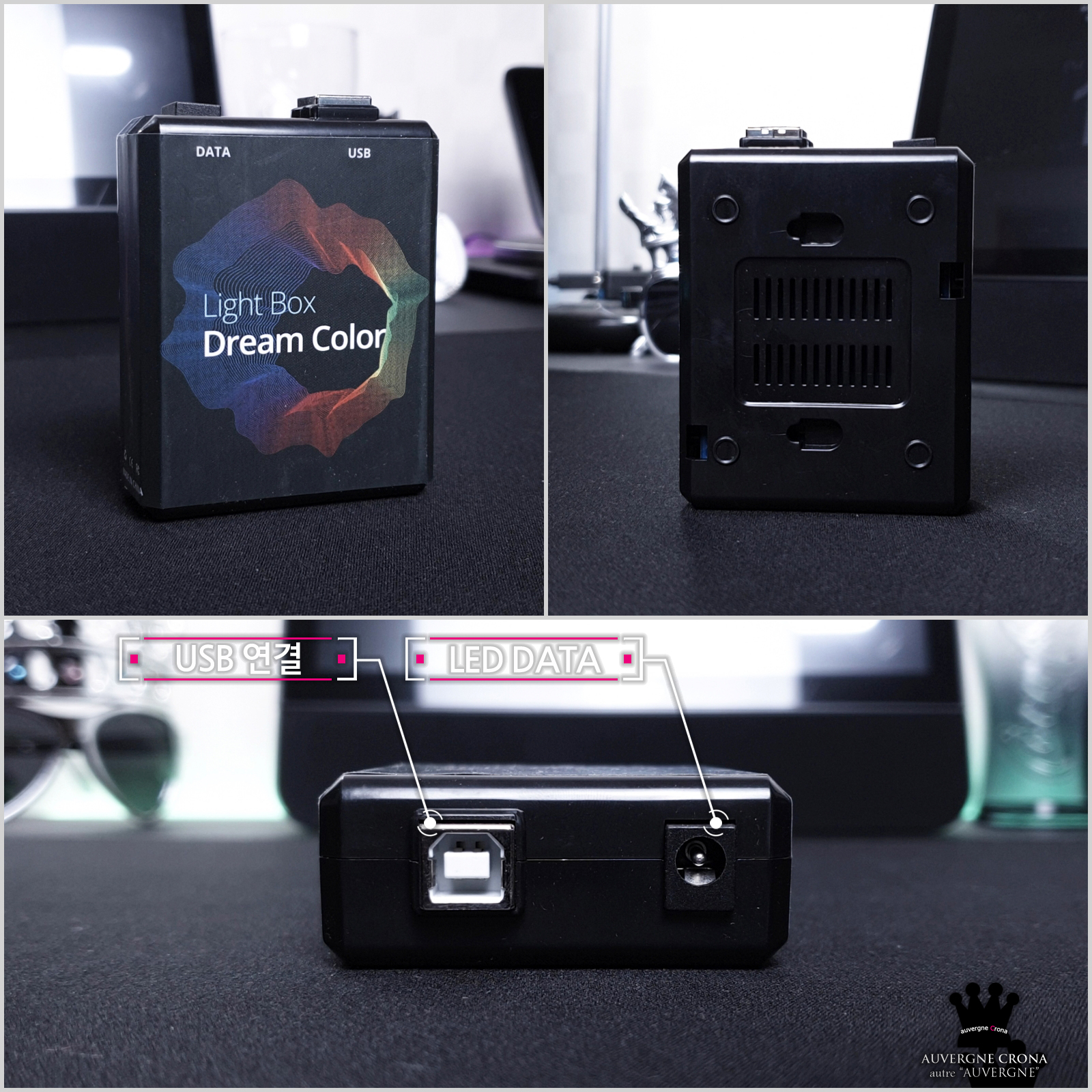 ▲ 우선, LED 스트립에 신호를 보내줄 라이트 박스를 살펴보겠습니다. USB-B 타입의 케이블로 PC와 연결해, LED 스트립에 전달할 신호를 제공받습니다. 그 후, LED DATA를 LED 스트립에 제공하는 역할을 하는데요. 크기는 일반적인 보조 배터리보다 살짝 작은 크기지만, 두께가 제법 있습니다.