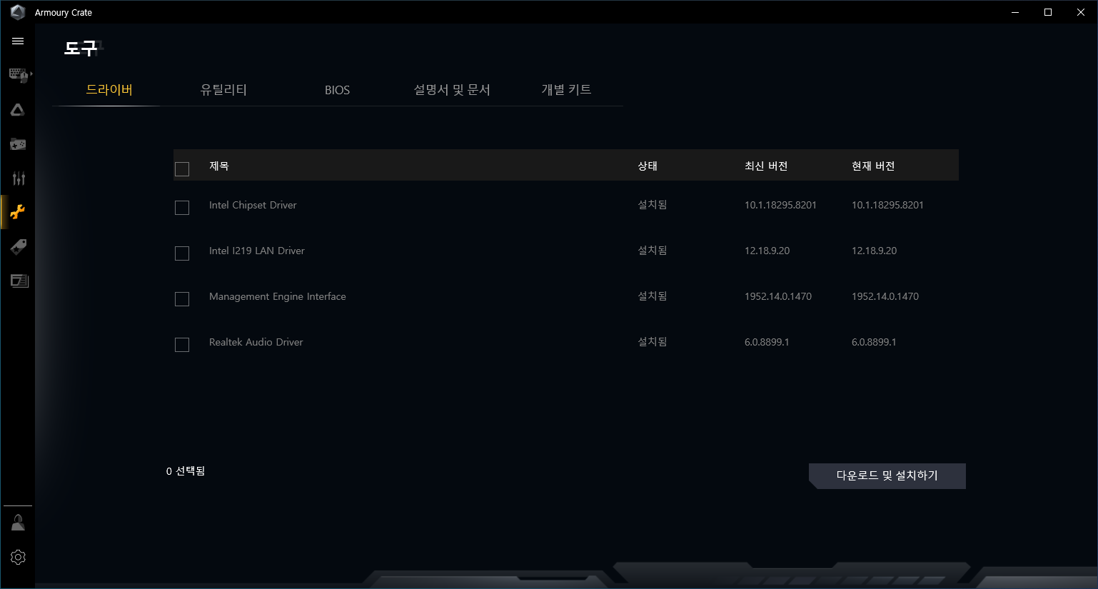 필자가 최근에 ASUS 메인보드를 테스트하면서 가장 유용한 유틸리티로 Armoury Crate 를 꼽습니다. 이 유틸을 통해서 윈도우를 처음 깔고 나서 필요한 드라이버 및 유틸을 자동으로 감지해서 찾아 줍니다. 간편하게 다운로드 및 설치를 다 수행해 줍니다. 그리고 AURA SYNC 관련 설정을 간편하게 할수 있게 해줍니다.