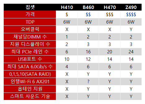 B460 칩셋은 Z490 같은 하이엔드 칩셋은 아닙니다. 하지만 메인스트림으로 사용하기에 좋은 장점들이 다 가지고 있으면서 가격면에서 착합니다. 사진으로 보시다시피 상위 버전의 기능을 왠만큼 다 가지고 있으면서 가격면에서 경쟁력이 좋아서 무척 인기가 좋은 칩셋 입니다.