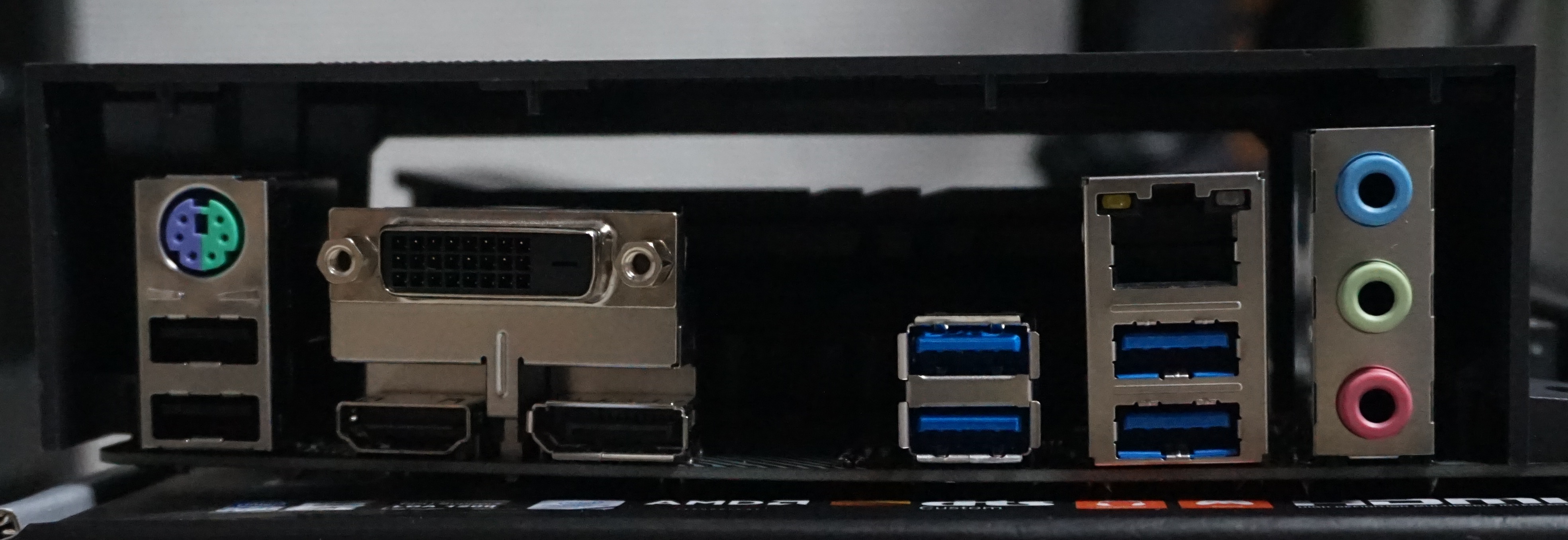백패널에는 내장 그래픽 활용을 위한 DVI, DP,HDMI 단자와 4개의 USB 3.2 GEN 1 포트를 볼수 있습니다.