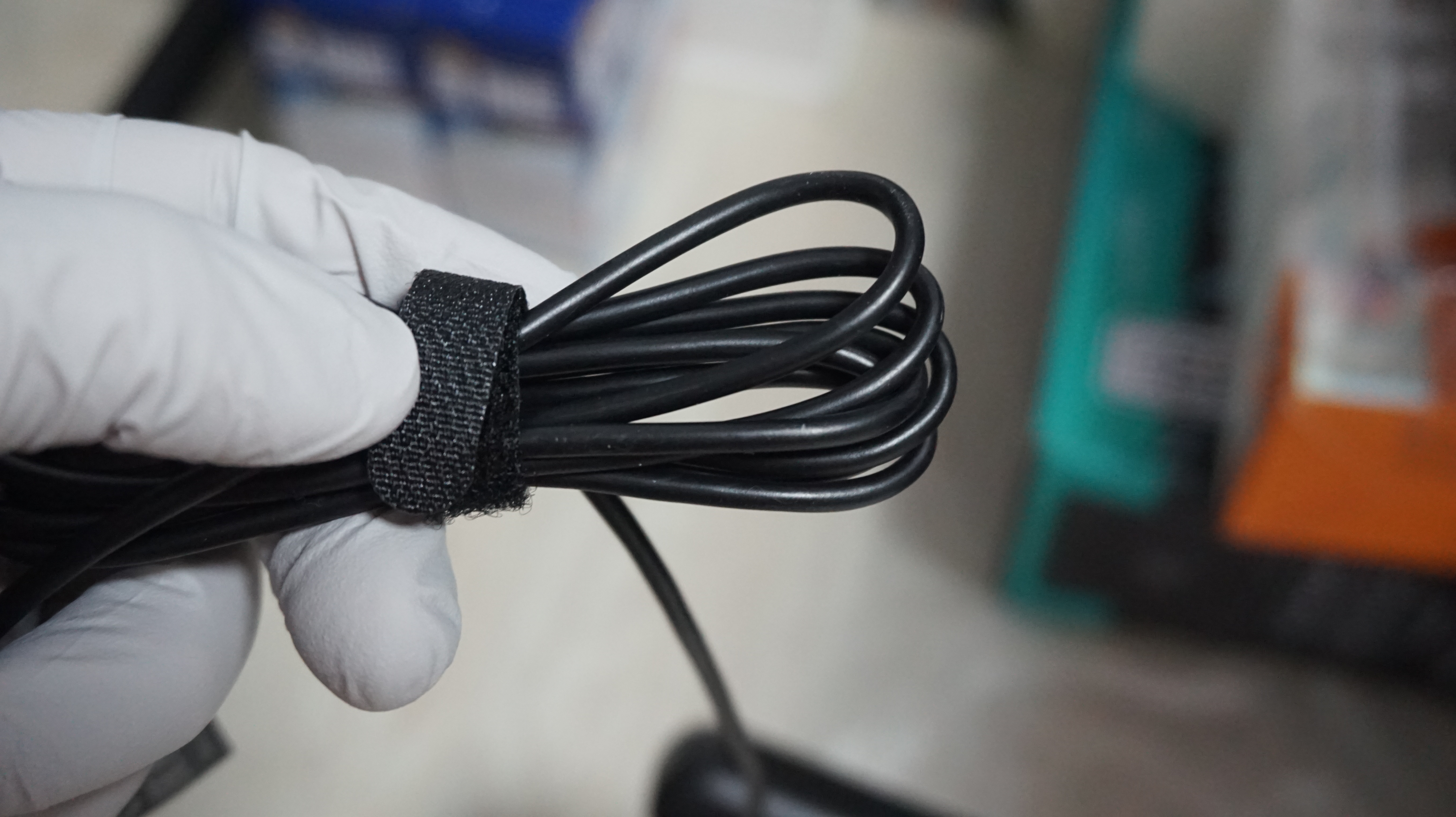 필자처험 모니터 옆에 허브를 사용하는 경우에는 케이블에 붙어 있는 부직포 케이블 타이를 활용해서 케이블 길이를 조절해 주시면 됩니다.