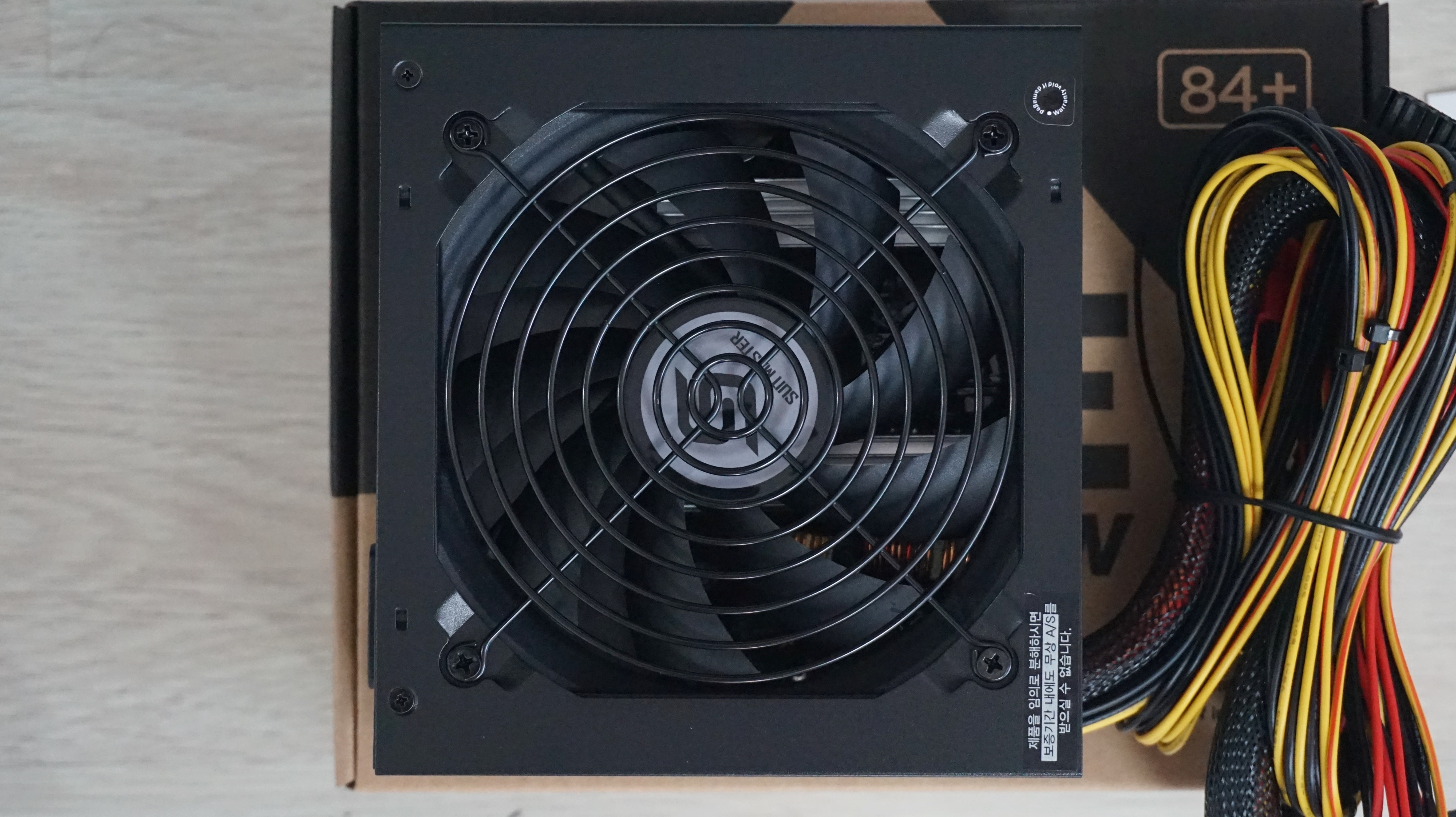 이 효율이라는 부분이 파워에서는 중요한데 최근에 80플러스 인증이라던지 하는 인증전문업체로 부터 인증을 받아서 효율을 증명하는 업체가 많습니다. 그만큼 효율에 신경을 쓰고 있는 분위기인데 왜 효율에 신경을 쓰느냐 하는 부분을 알고 싶으신 분들도 있으실 겁니다. 아주 아주 간단하게 줄여 보자면 효율이 80%인 파워라는 뜻은 " 콘센트를 통해서 파워로 들어오는 전기가 100 이면 그걸 파워에서 컴퓨터에 쓸수 있는 전기로 바꿔서 각 부품에 전기를 전달하는 전기는 80이라는 뜻 " 입니다. 그렇다면 단순한 산수로 보게되면 100 - 80 = 20 이라는 20이 어딘가로 사라지고 없습니다. 잘은 모르지만 열역학 제 1법칙이라는 것에 의하면 열과 일은 에너지의 한 형태로 서로 형태만 바뀔 뿐 에너지의 총량은 일정하다 라고 합니다. 쉽게 말하면 전기가 100으로 들어오면 모양만 바뀌어서 전기가 100으로 사용된다는 이야기 입니다. 그런데 실제로는 20이 사라졌습니다. 열역학 제1법칙에 의하면 사라질수가 없습니다. 그래서 이 20은 열로 전환이 된 것입니다. 에너지는 보존되기에 사라진게 아니고 다른 형태로 변환이 되어서 컴퓨터 전기에 사용이 안될뿐 열로 전환이 된 것 입니다. 생각해 보시면 얼마나 아까운 전기겠습니까. 전기세 내서 100의 전기를 사용하는데 실제로 80만 사용되고 나머지 20은 열을 발생 시켜서 컴퓨터 부품에 안 좋은 영향을 줍니다. 그래서 효율이 중요한 것 입니다. 효율이 높으면 그만큼 낭비되는 전기가 적어지고 열 발생도 줄어들어 컴퓨터 부품에 악영향을 주는 부분도 적어지는 것이기 때문입니다. 한가지 더 이해를 돕기 위해 예를 들면 그래픽카드가 원하는 전기가 300W 일때 80% 효율의 파워는 외부에서 300W 사용하고 240W 충족이 됩니다. 그러면 당연히 나머지 60W 도 더 끌어와야 합니다. 그럼 70% 파워는 300W 를 사용하고 210W 사용할수 있으니 90W 더 끌어와야 합니다. 문제는 얼핏 보면 60W와 90W 30W 차이만 나는것 처럼 보이지만 다시 이 전기를 맞추기 위해서 전기를 끌어올때도 효율적용이 됩니다. 대충 생각해도 또 손실되는 전기가 생기게 되는것 입니다. 이렇게 되면 손실되는 전기만큼 돈과 컴퓨터 부품의 수명이 낭비되는 것이니 효율이 좋은 파워를 사용하는 것이 얼마나 중요한일인지 알게됩니다. ' ABKO SUITMASTER AXE 500W ' 은 84+ 라는 표시로 효율이 84% 보다 조금더 효율이 좋다는 뜻을 표시하고 있습니다. ABKO 에서 제공하는 측정표를 보게되면 로드율 40% 구간에서 84.37% 를 기록하고 있습니다. 그리고 100% 구간에서는 80.76%를 기록했습니다. 20%~100% 까지 80% 밑으로 효율이 떨어지지 않습니다. 상당히 좋은 효율을 보여주고 있습니다.