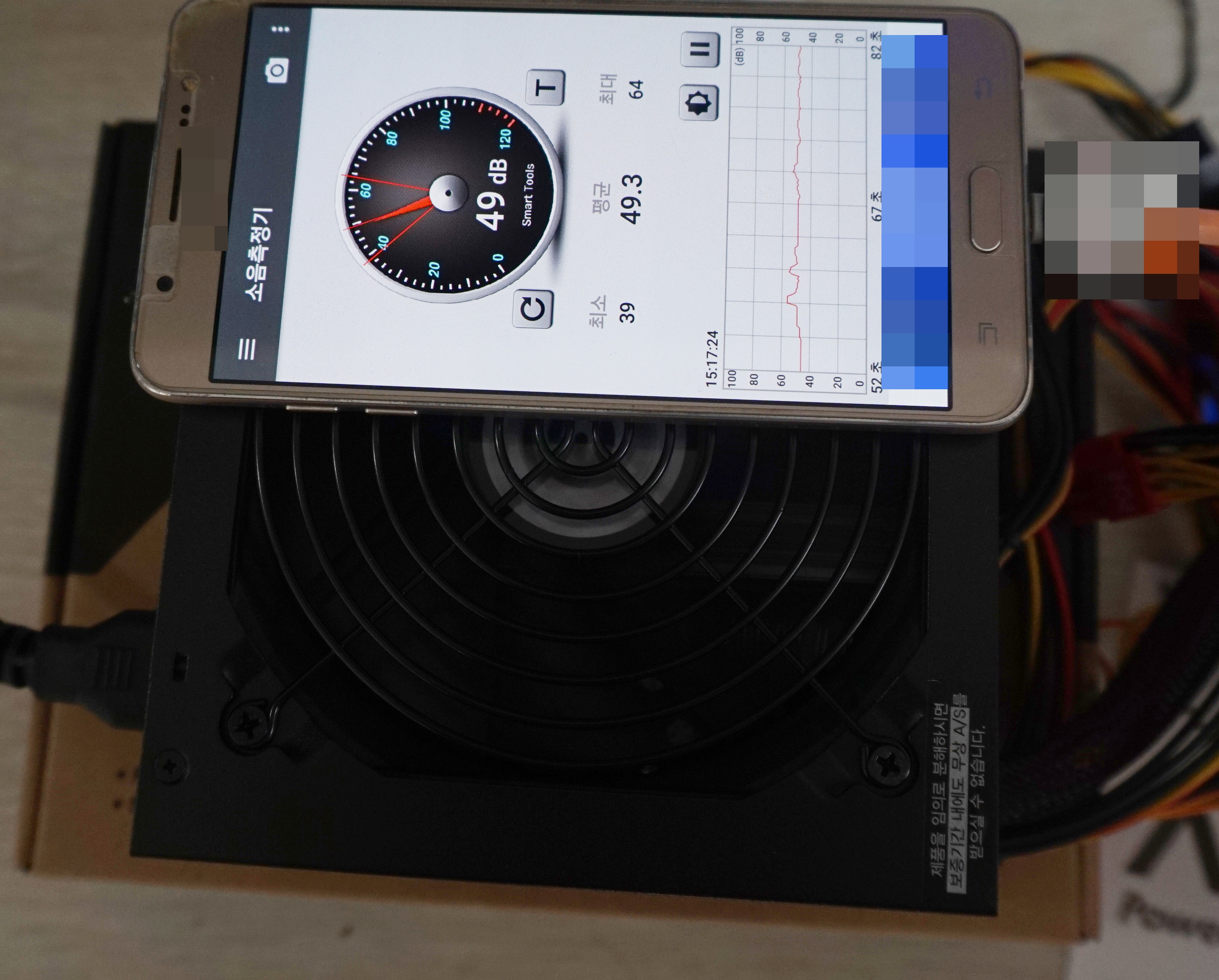 'ABKO SUITMASTER AXE 500W' 은 120mm 사이즈의 하이드로팬이 장착되어 있습니다. 이 팬은 일반적인 파워 제품에 장착되는 슬리브 방식의 팬 과는 달라서 수명이 길고 소음이 낮은 장점을 가지고 있습니다. 위의 사진에 소음측정결과를 보시면 먼저 주변환경 소음측정 결과 43데시벨이 나왔습니다. 그리고 파워를 작동 시키고 측정 결과 49데시벨이 나왔습니다. 파워를 인케이스 하지 않고 팬 바로 위에서 측정한 결과입니다. 주변환경 소리에 다른 팬 소음 같이 섞여서 정확한 측정은 어려웠지만 49데시벨 보다도 아무래도 조금은 더 낮은 소음을 내는 것이라고 추정을 합니다. 국가소음정보시스템 기준표에서 40데시벨은 도서관, 주간의 조용한 주택으로 표기하고 50데시벨은 조용한 사무실로 표기하고 있습니다. 그러니 40~50데시벨 사이 정도로 보면 상당히 조용한 소리라는 것을 알수 있습니다. 여기에 더해서 파워가 가동될 때 팬은 1,000 ~ 1,100RPM의 저속 운행으로 조용하게 돌아가며, 부하가 40% ~ 50%에 도달할 시 온도에 따라 팬속도가 빨라지며 최대 1,960RPM 까지 올라갈 수 있습니다. (필자는 파워테스터기에 연결해서 작동을 시켰기에 저속운행 상태로 추정합니다.) AXE 500W 제품에 적용된 팬은 PSU 전용 하우징 쿨링 팬으로 배기구 측 기류에 의해 발생할 수 있는 에어커튼 작용을 억제해서 와류에 의한 열 맴돌이 현상을 방지하게 됩니다. 그래서 내부에 바람길을 만들어 효율적인 공기흐름을 통한 강력한 쿨링 효과를 지니고 있습니다.