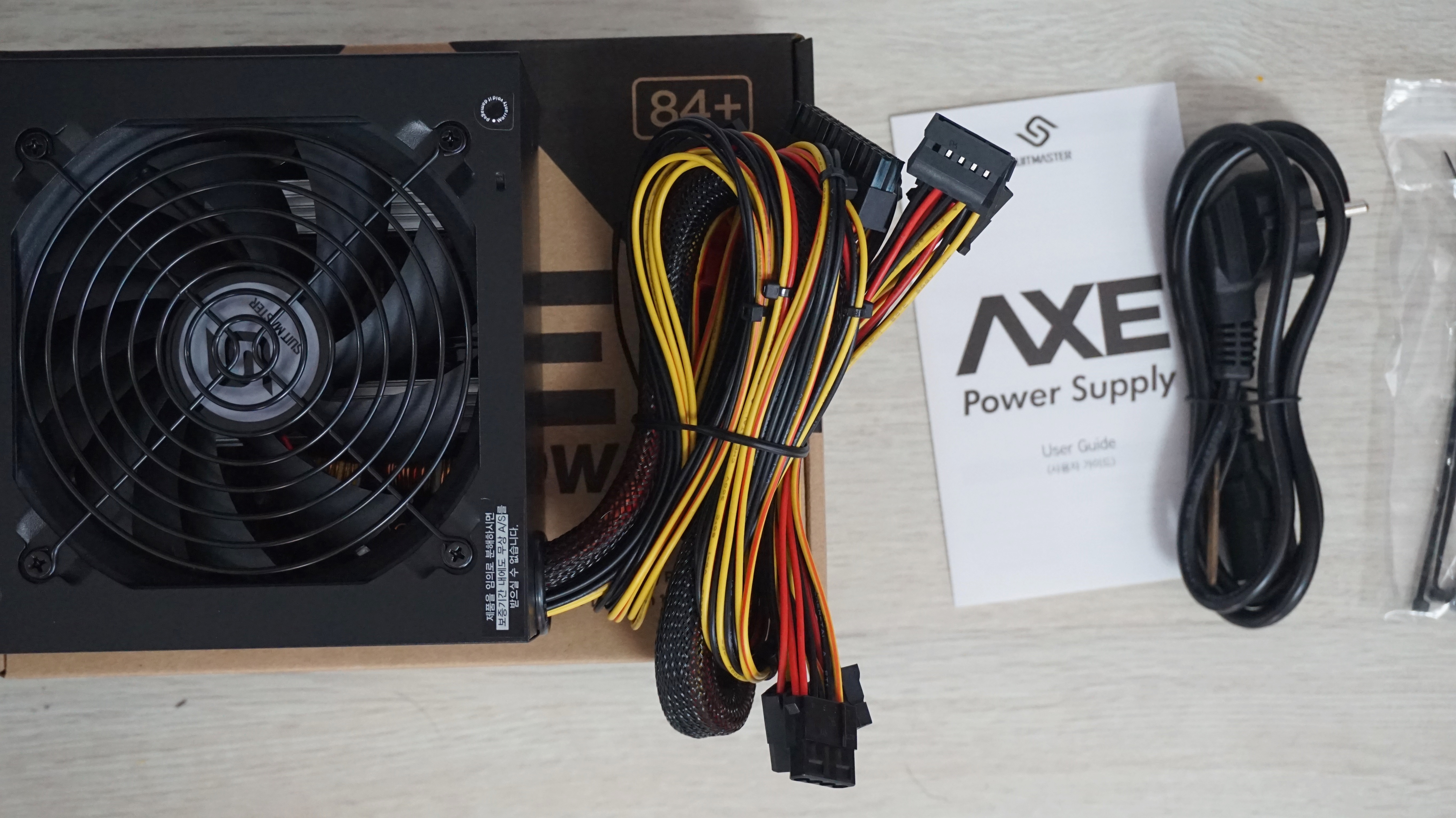 구성품은 단출하게 전원케이블과 1장짜리 사용자 가이드, 케이블타이, 나사로 구성되어 있습니다.