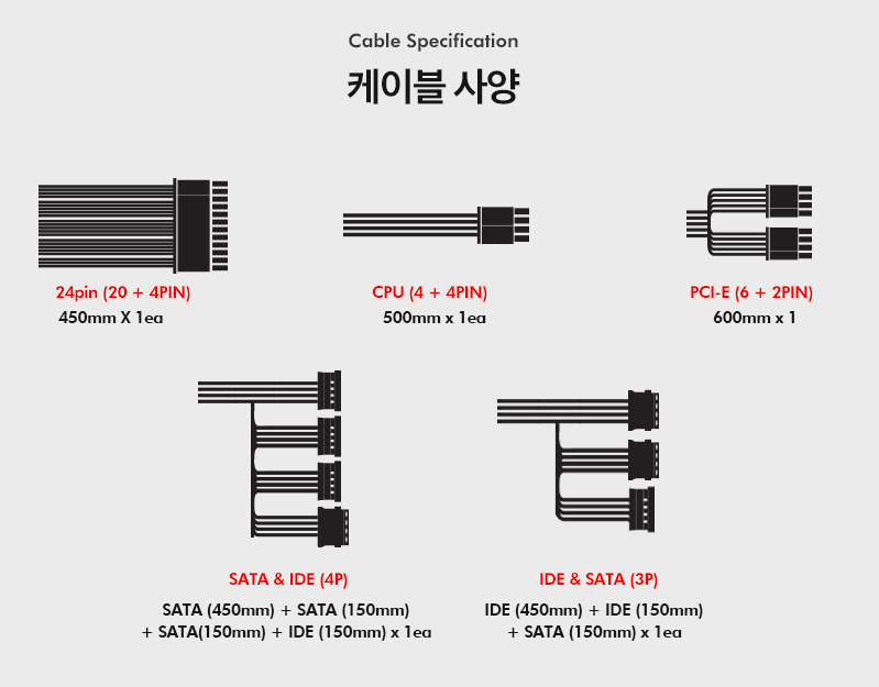 AXE 500W 는 최상급 품질의 내부 부품 구성을 하고 있습니다. (1) 고성능 자성 코어 - 높은 효율의 전력변환과 에너지 절약을 통해 낭비되는 전력을 줄여 고성능 / 고효율 이라는 장점을 가집니다. (2) PCB 방식 EMI 필터 설계 - 전력손실이 발생할 수 있는 케이블을 최소화한 설계로 전력효율을 높이고 노이즈 필터효과를 극대화 했습니다. (3) 고품질 105도 캐패시터 - 메인 캐패시터 및 출력단의 캐패시터들까지 모두 고품질 고용량 105도 캐패시터가 적용되어 있습니다. 일반 85도 대비 4배 이상 긴 수명으로 최고의 안전성을 제공합니다. (4) 스위치 트랜스포머 - 안정적인 성능의 스위칭 트랜스 구성으로 입력부의 전류를 과부하, 과전류 없이 출력부에 전달할 수 있습니다. 12V 채널 출력을 보다 안정적이고 발열은 낮게 이끌어내 고효율의 출력을 낼 수 있도록 설계했습니다. (5) 우수한 품질과 열 분산 설계 - 글로벌 기업 'INFINEON' 사의 MOSFET 사용으로 더욱 탁월한 방열 효과를 지니며 열 분산에 최적화된 내부 설계로 안정적인 성능을 통해 에너지 효율을 극대화할 수 있습니다.