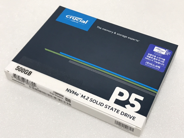 마이크론 Crucial P5 M.2 2280 아스크텍 (500GB)의 패키지 모습입니다.