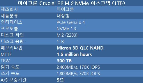 ▶ 마이크론 Crucial P2 M.2 NVMe 아스크텍 (1TB) SPECIFICATION.