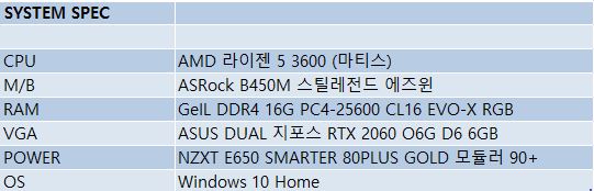 테스트에 사용된 데스크탑의 사양은 위와 같으며,