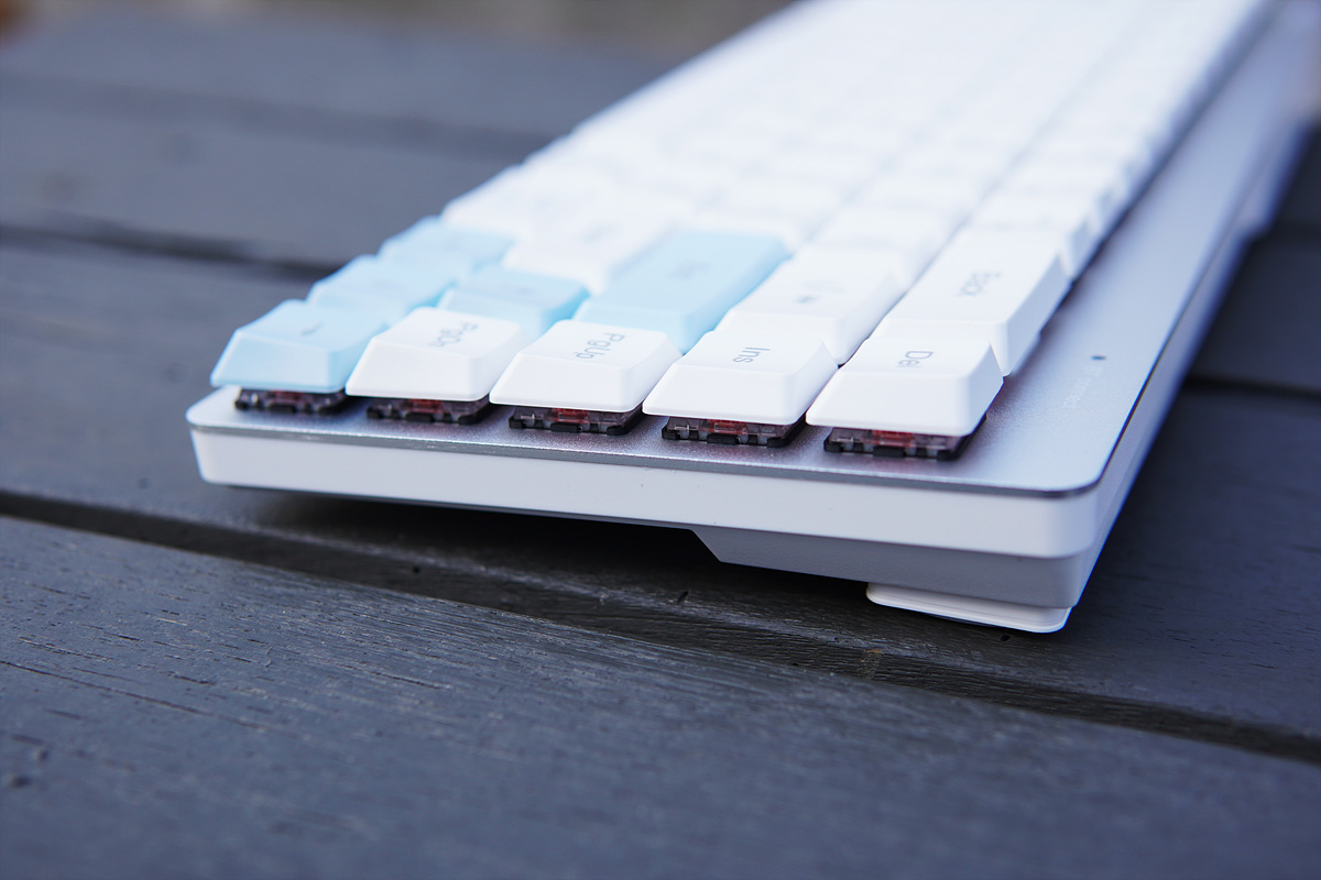 무선(블루투스)으로 3대까지 연결할 수 있는 부분은 다른 기기와 비슷하지만 유선으로 사용할 수 있는 부분과 물리 스위치를 통해서 기기간 연결(페어링)을 바꿀 있는 부분 역시 좋았습니다. 배터리는 LED를 켠 상태에서도 며칠 동안 충분히 사용할 수 있는 용량이었으며 Type-C 포트로 어디서나 편리하게 충전을 할 수 있습니다. 키보드에서 가장 중요한 부분인 키감 역시 낮은 높이로 인해 다른 스위치와는 확실한 차이를 느낄 수 있었습니다. 스테빌라이저나 통울림 역시 일반 키보드들에 비해 전혀 떨어지지 않는 수준이었습니다.