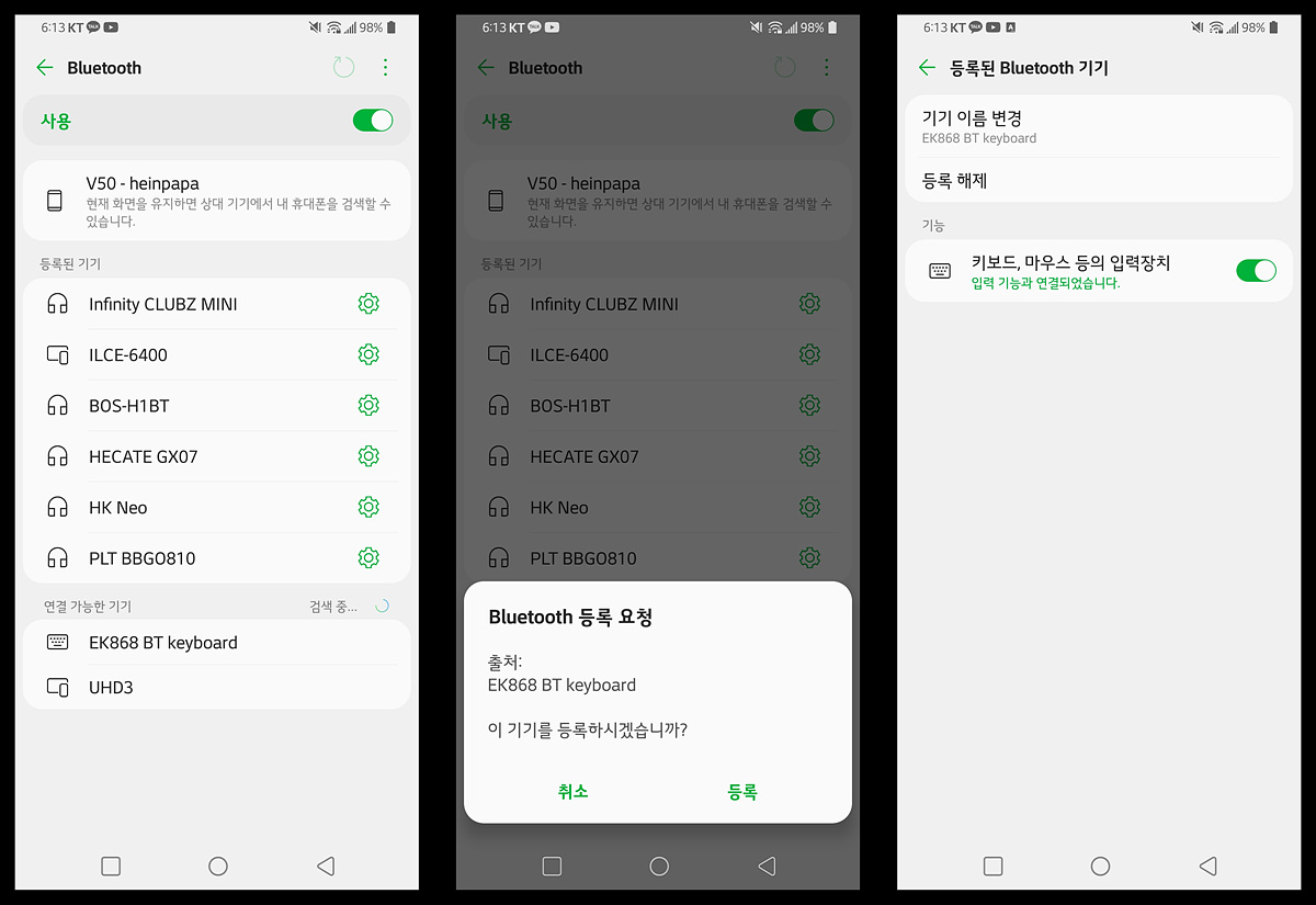 안드로이드 스마트폰, IOS 아이패드, PC의 블루투스로 페어링을 할 수 있으며