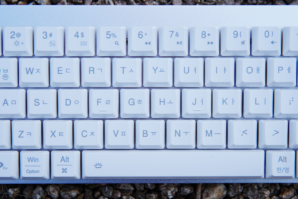 이중사출이 아니라 글자가 투과되지는 않지만 어두운 곳에서 사용할 때 유용하게 사용할 수 있습니다. Fn + 스페이스 조합키로 LED의 밝기를 조절할 수 있습니다.
