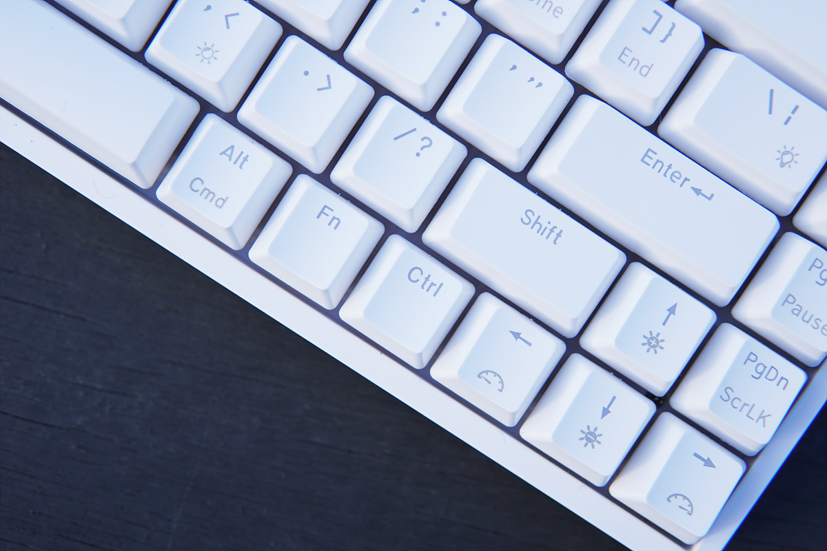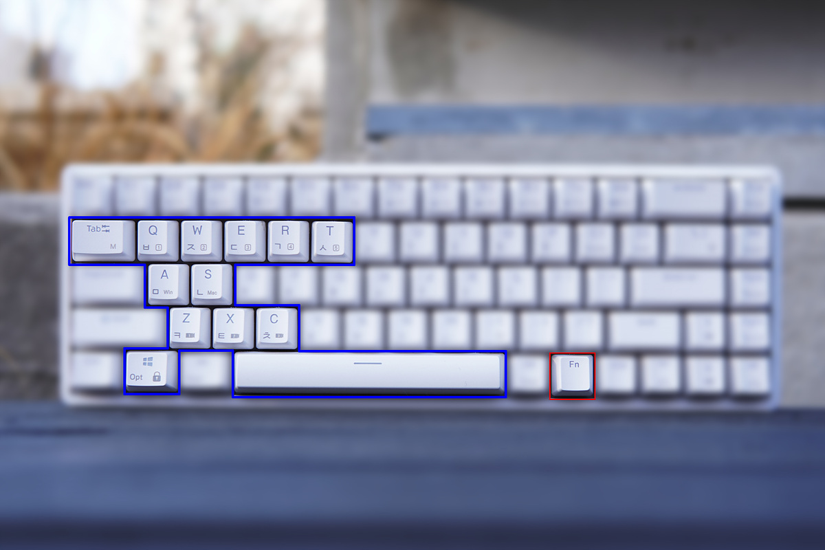 Fn 키와 조합으로 사용하는 키나 페어링 등 여러 가지 기능들은 모두 키캡에 각인이 되어있어서 미니 배열에 익숙하지 않은 사용자들도 쉽게 확인할 수 있습니다.