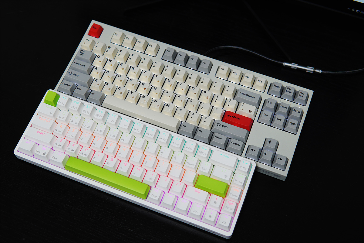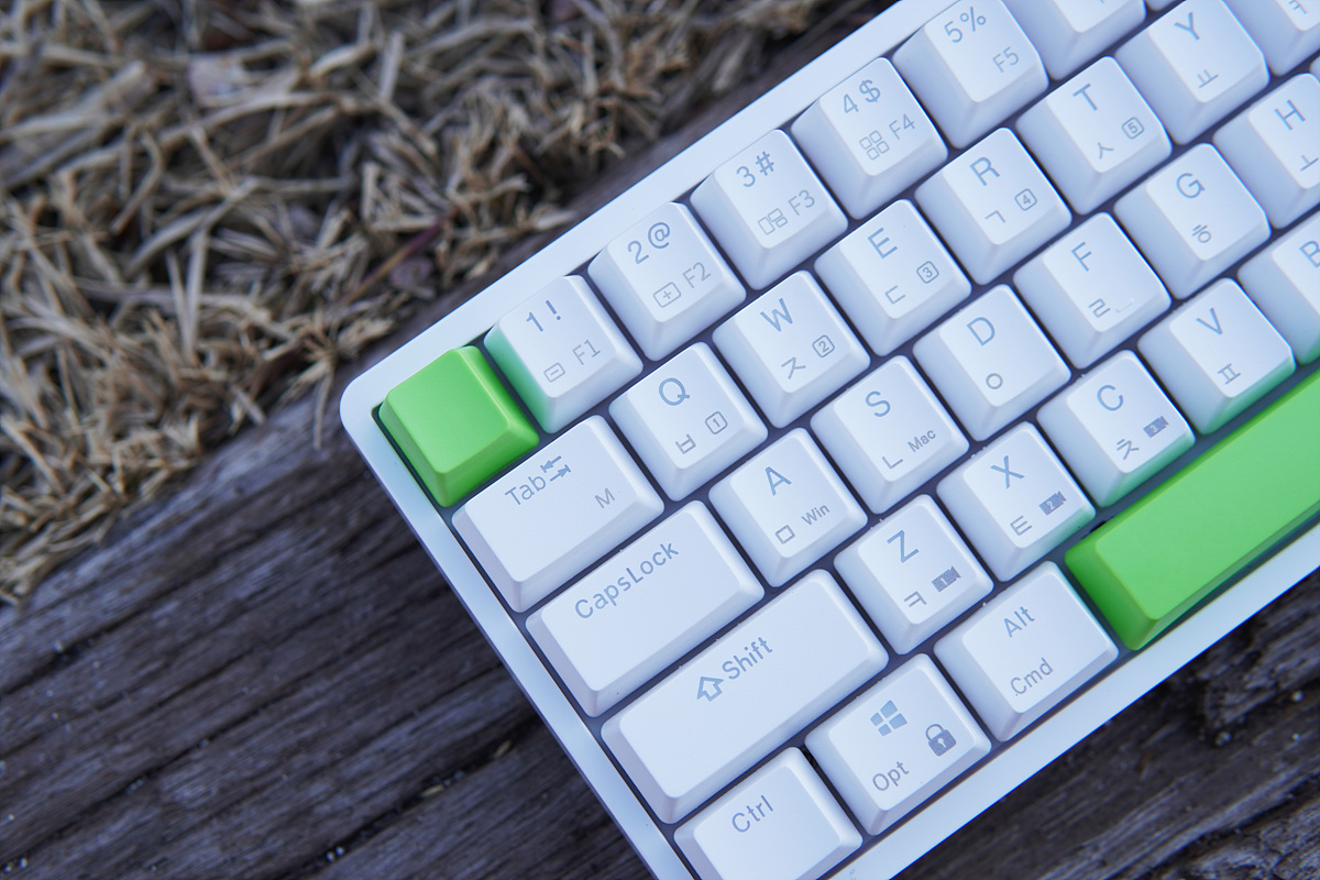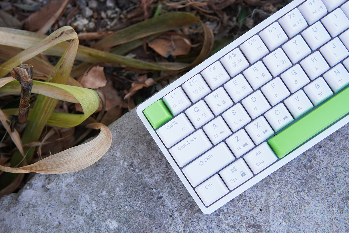 확실히 포인트 키캡을 사용했을 때가 훨씬 더 좋은 거 같습니다. 기본이 화이트라서 초록색뿐 아니라 다른 색의 포인트 키캡도 잘 어울릴 거라 생각됩니다.