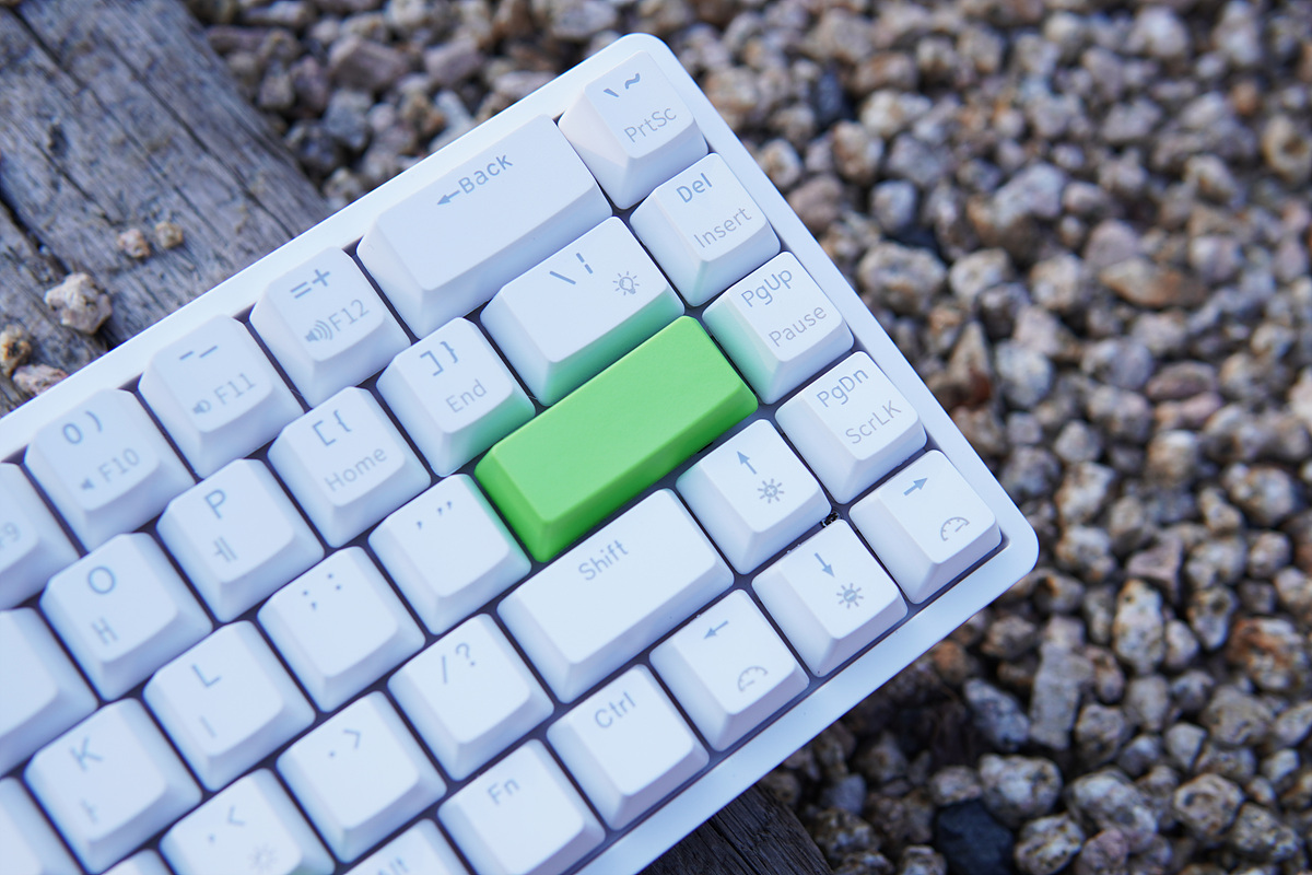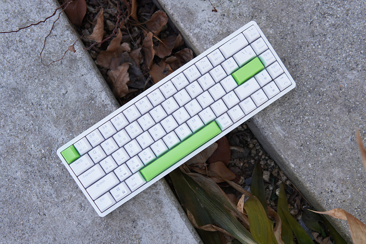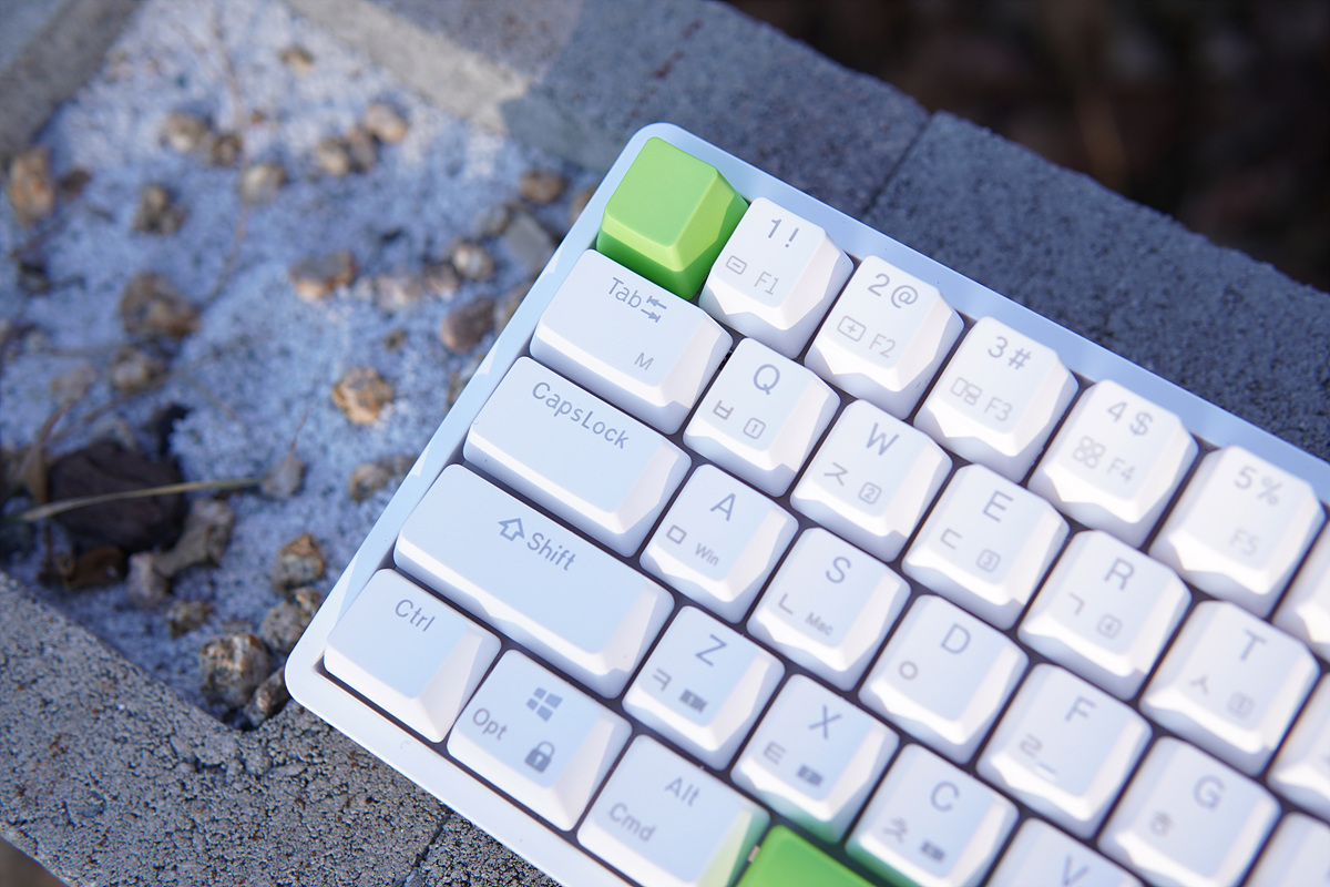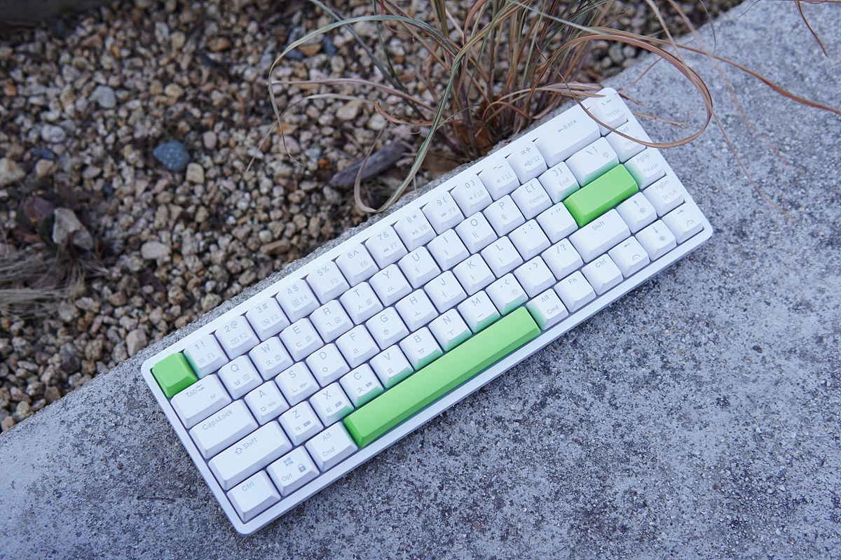확실히 포인트 키캡을 사용했을 때가 훨씬 더 좋은 거 같습니다. 기본이 화이트라서 초록색뿐 아니라 다른 색의 포인트 키캡도 잘 어울릴 거라 생각됩니다.