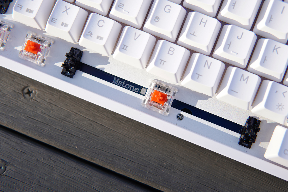 68BT는 엠스톤의 특징이라고 할 수 있는 SF(이중 흡음) 기능이 적용이 되었습니다. 키보드 바닥에서 한번 PCB와 보강판 사이에 2차로 흡음재를 넣어서 통울림을 최소화하는 기능으로 꽤 유용한 기능입니다. 추가로 스테빌라이저의 윤활까지 되어있어서 단순 기능뿐만 아니라 키보드의 가장 기본기라고 할 수 있는 타건감까지 꽤 많은 신경을 썼다는 게 느껴졌습니다.