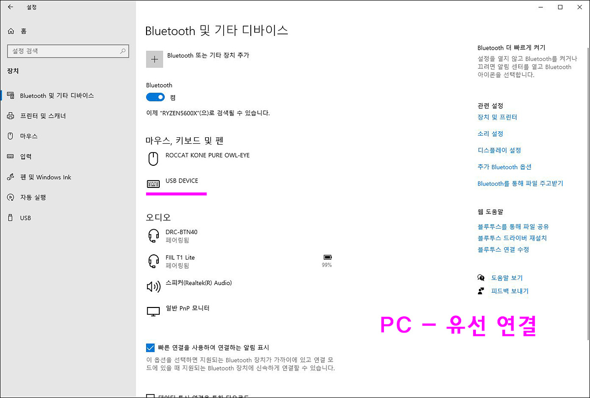 유선 모드에서는 USB 장치로 인식을 합니다.