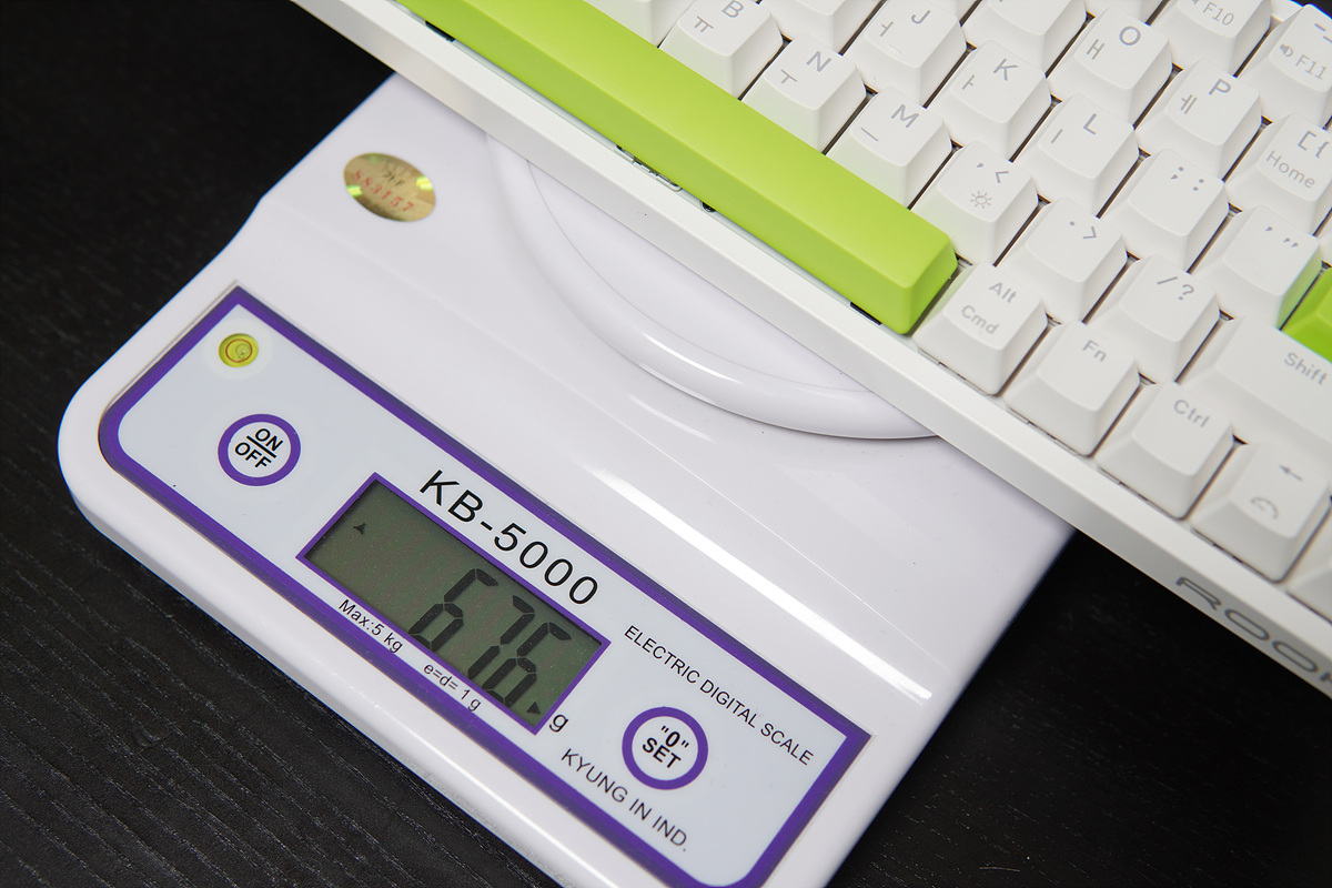 측정된 무게는 676g으로 키보드의 크기를 생각한다면 제법 묵직한 편입니다. 개인적으로는 무게감이 있는 키보드를 좋아하지만 휴대용으로는 조금 부담이 될 수 있는 무게입니다.