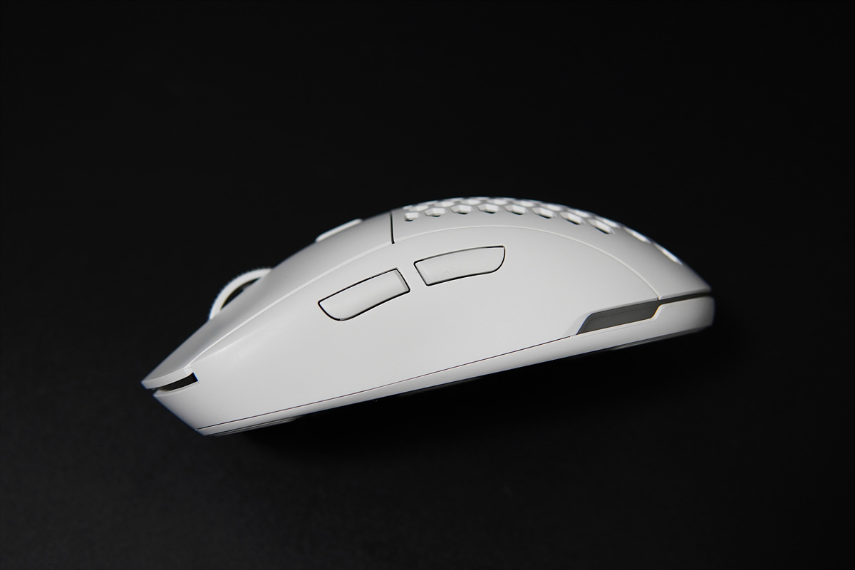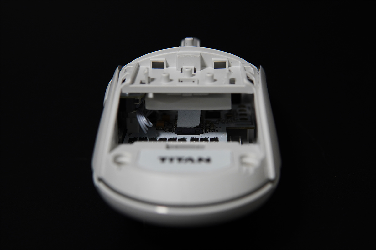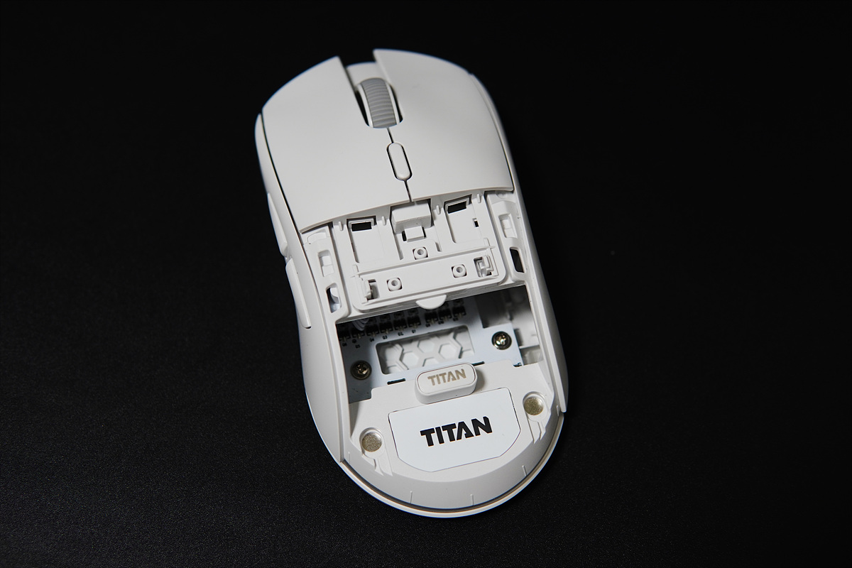이전의 TITAN 무선 제품들보다 가로는 조금 짧아진 반면 세로 길이는 조금 더 늘어났습니다. 좌우 대칭이나 크기에 있어서는 로지텍의 G Pro 슈퍼 라이트와 비슷한 모습입니다.