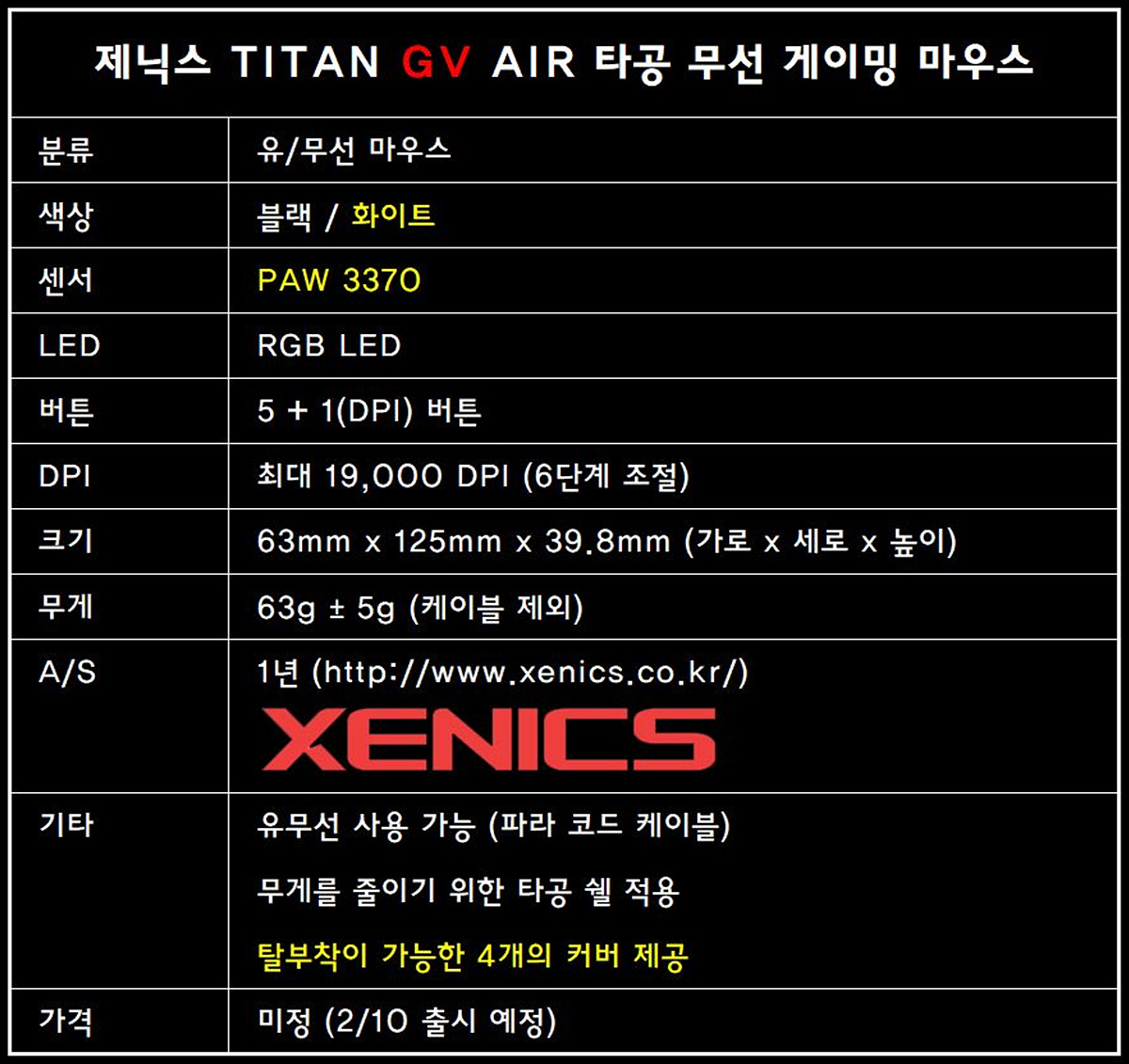 ◆ 제닉스 타이탄 GV AIR 무선 마우스 LED