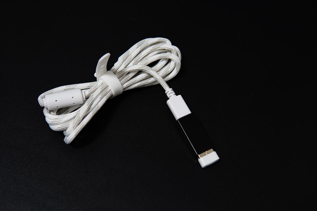 파라코드가 적용된 케이블은 일반적인 충전기에서 충전도 할 수 있으며 PC와 연결을 하면 충전과 동시에 유선 모드로도 사용을 할 수 있어서 배터리에 대한 걱정을 줄일 수 있습니다. 기본 구성품인 C to A 젠더를 사용한다면 전용 수신기를 조금 더 길게 확장할 수 있어서 본체를 책상 아래에 두는 분들도 편리하게 사용할 수 있습니다. 파라코드 케이블과 변환 젠더는 이전 제품들과 마찬가지로 상당히 마음에 드는 부분 중 하나입니다.