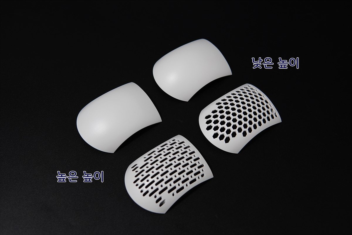 이전에는 타공 디자인을 부담스러워하는 사용자들을 위해 일반적인 팜 커버 두 가지만 제공했지만 이제는 이런 두 가지 모양에 높이까지 차이를 두어서 사용자가 원하는 모양과 크기를 선택할 수 있습니다. 타공 커버는 모양으로 두 제품의 차이를 쉽게 확인할 수 있지만 채워져 있는 커버는 손으로 잡아야만 크기(높이)의 차이를 확인할 수 있어서 아쉬웠습니다. (눈으로는 확인하기는 힘들지만 손바닥으로 잡아보면 차이를 느낄 수 있습니다.)