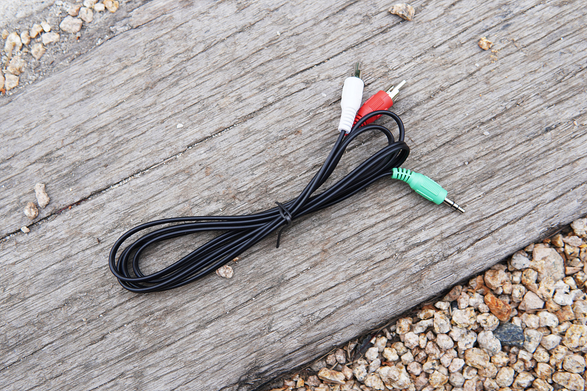 RCA to Stereo 케이블입니다. 초록색 부분을 PC나 노트북 커넥터에 연결을 합니다.