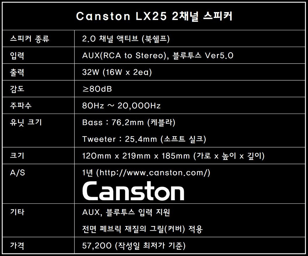 요즘은 스피커를 유선 & 무선(블루투스)으로 같이 사용하는 게 대세인 만큼 캔스톤 LX25 역시 3.5mm AUX와 블루투스로 PC, 노트북, 태블릿, 스마트폰과 같은 기기에서 편리하게 사용할 수 있습니다. 케블라 재질의 3인치 우퍼와 1인이 실크돔 트위터를 사용하고 있으며 작고 아담한 크기라 공간이 넉넉하지 않은 장소에서 사용하기에도 좋습니다. 스피커의 외형과 기능 소리에 대해 좀 더 자세하게 살펴보도록 하겠습니다.