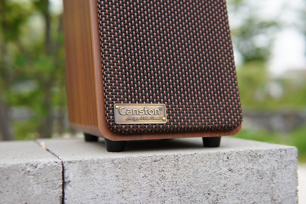 앞쪽의 페브릭 재질의 커버와 함께 캔스톤 로고 역시 레트로 콘셉트에 잘 맞는 디자인으로 되어있습니다. 스피커는 소리가 가장 중요하지만 소리와 함께 눈으로 보는 감성도 정말 중요합니다. ^^