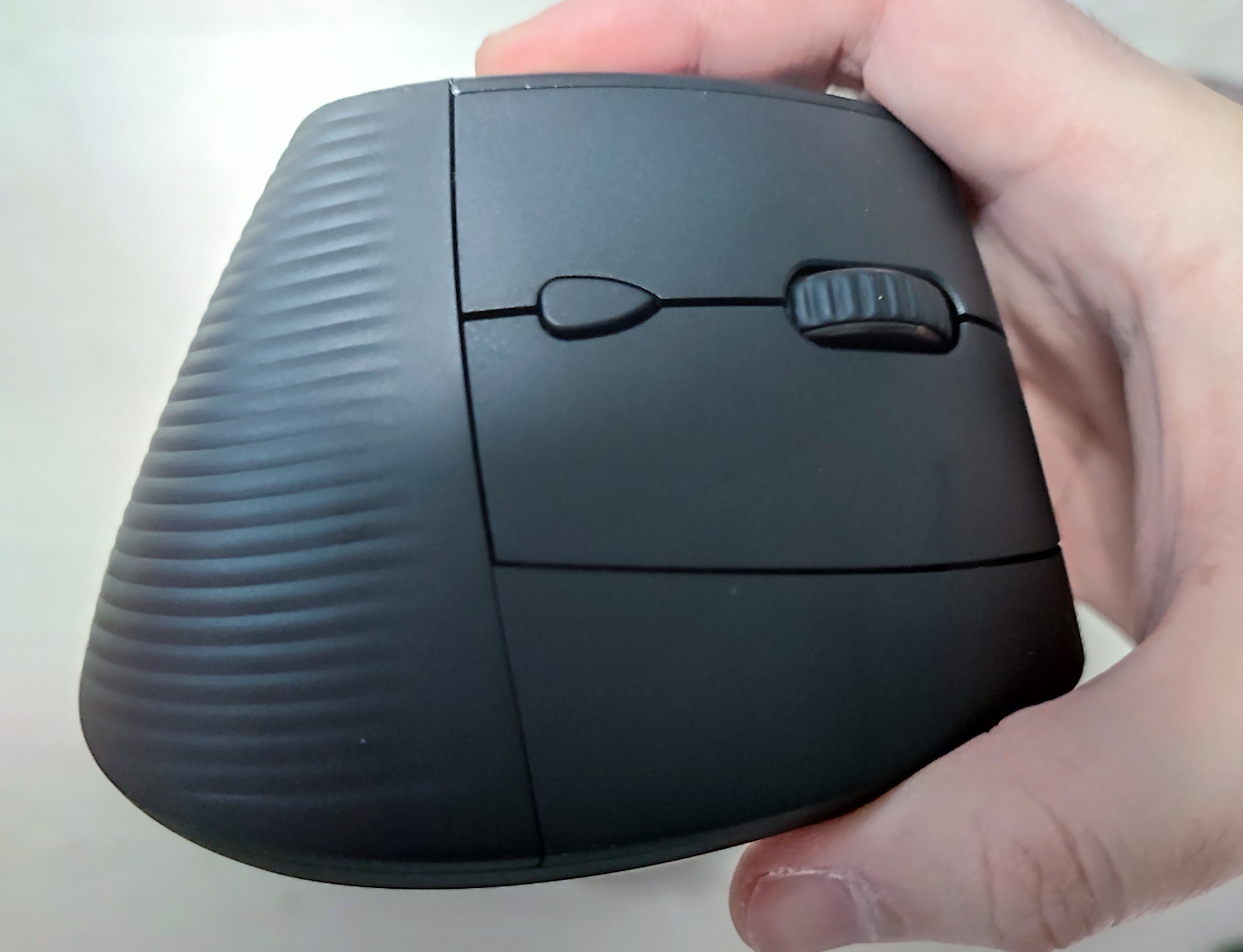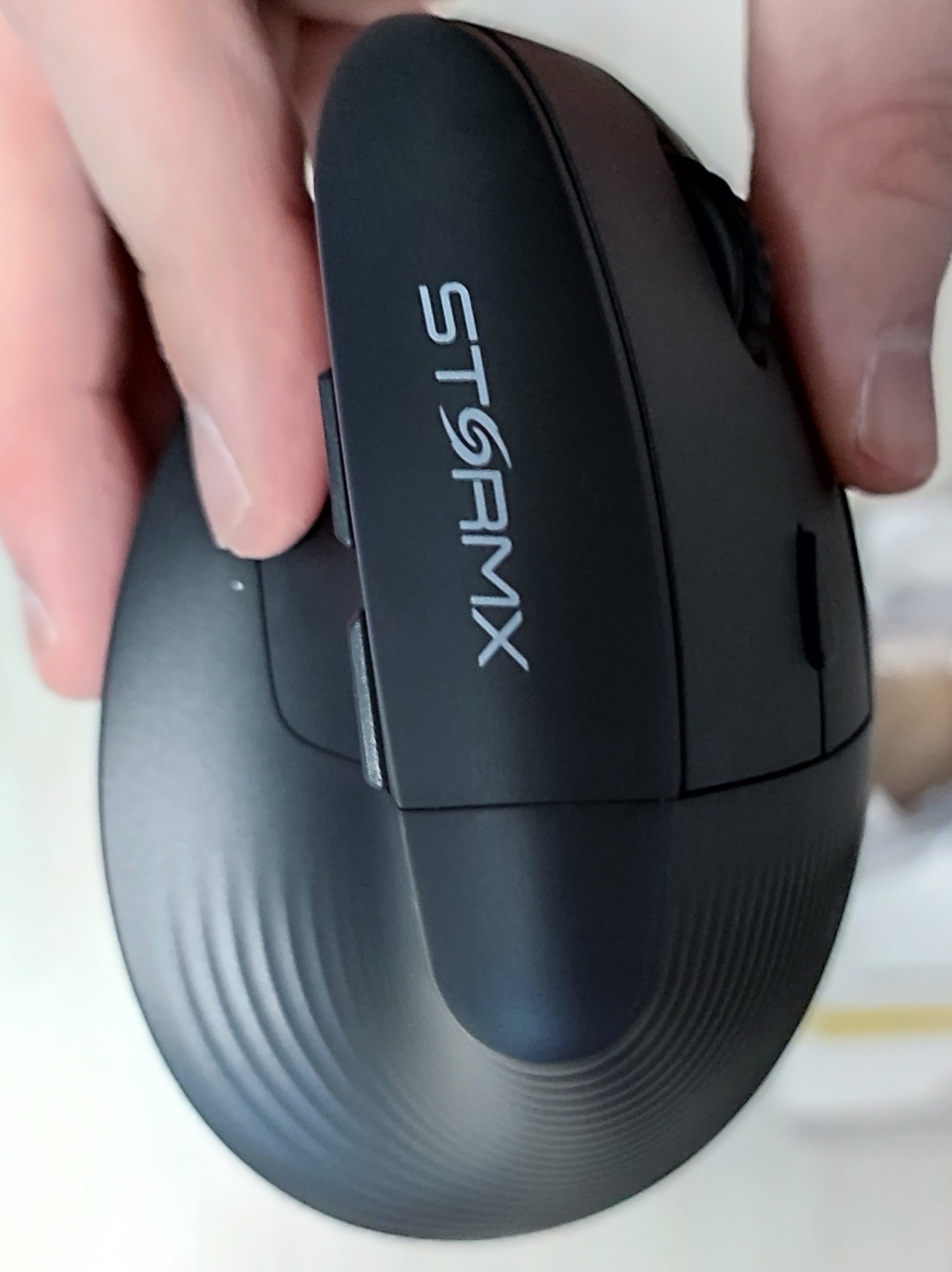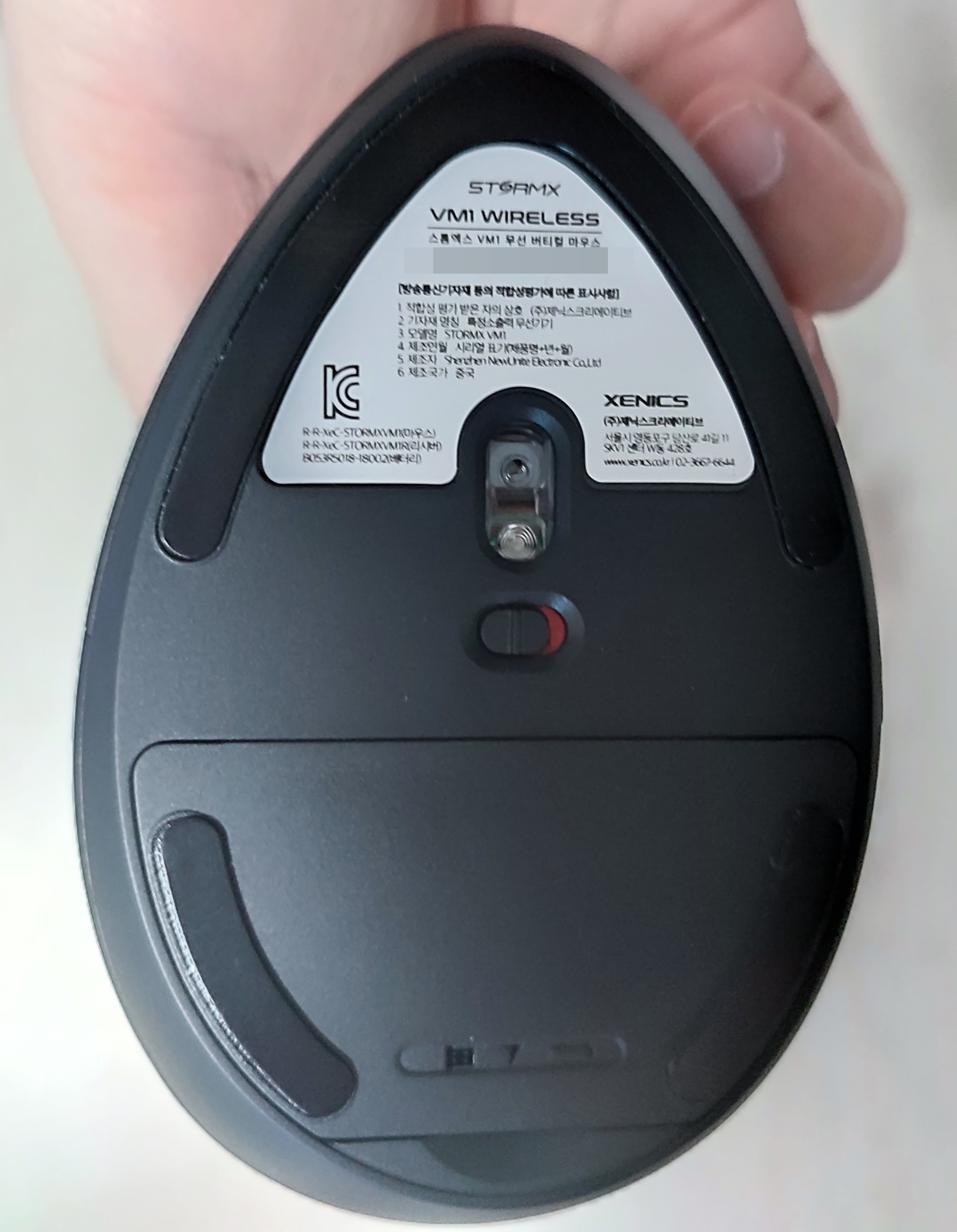 필자처럼 이미 버티컬 마우스를 사용하던 사용자에게는 착 감기는 좋은 그립감을 보여줍니다. 무엇보다도 필자가 좋게 느낀 점은 " 무게 " 였습니다. 필자가 전에 사용하던 버티컬 마우스는 바닥에 무게가 쏠린데다가 무게가 무거워서 순간적으로 마우스를 살짝 들어올려서 움직일 때 마우스를 놓치거나 하는 상황이 발생해서 불편했는데 '제닉스 STORMX VM1 무선 버티컬 마우스' 은 원체 가벼워서 그런 염려는 없어 보였습니다. 표기된 무게는 95g 밖에 되지 않습니다.
