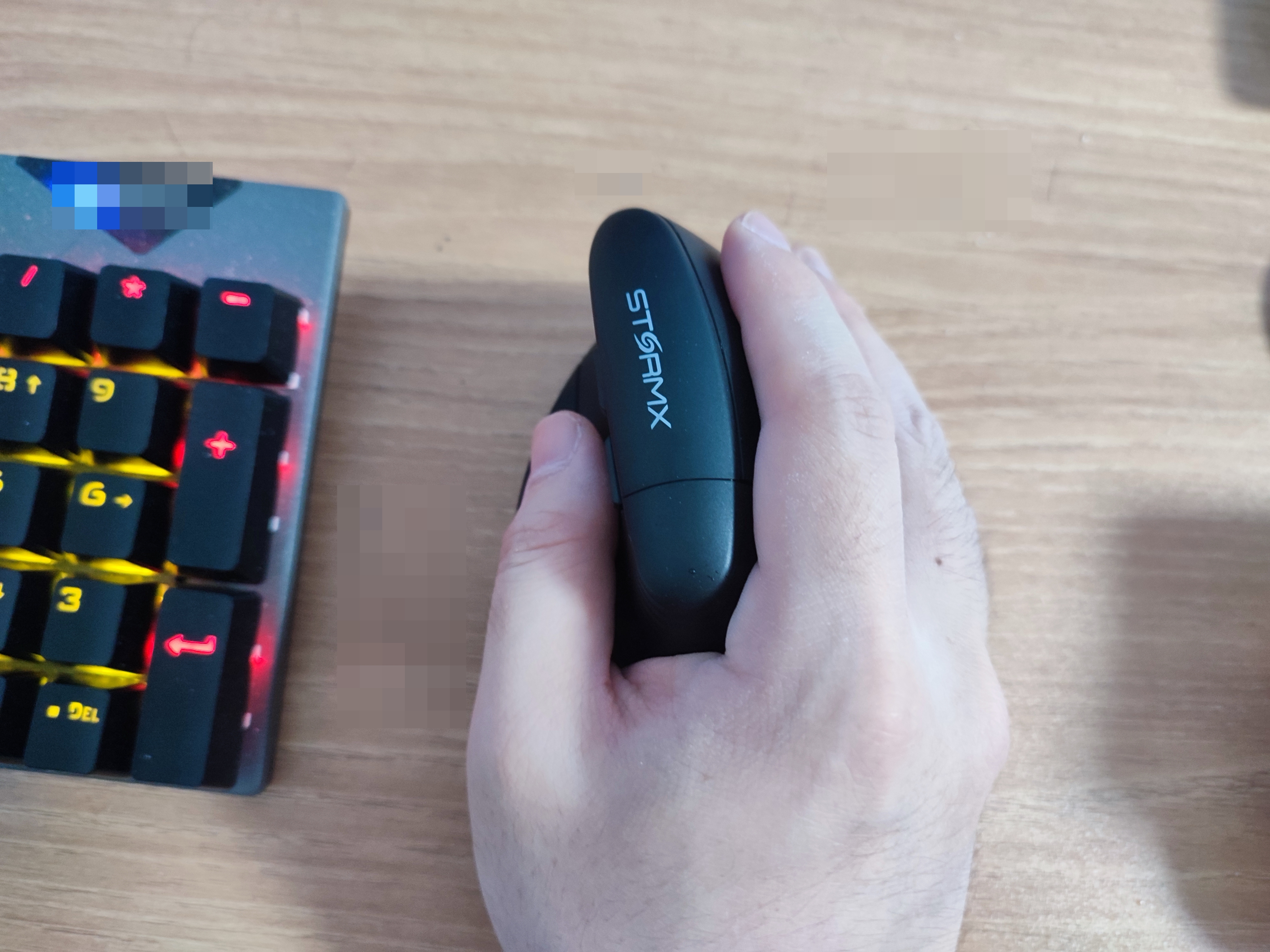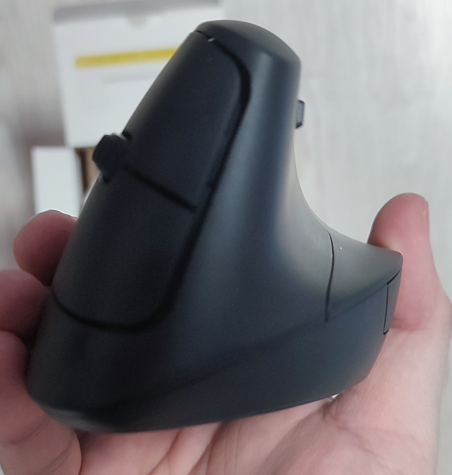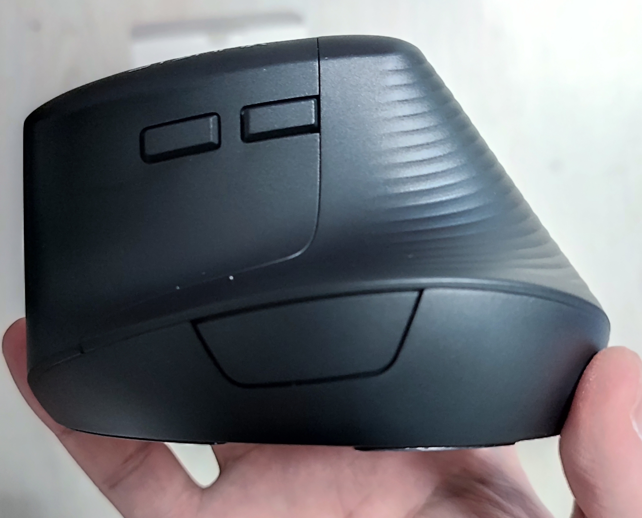 필자처럼 이미 버티컬 마우스를 사용하던 사용자에게는 착 감기는 좋은 그립감을 보여줍니다. 무엇보다도 필자가 좋게 느낀 점은 " 무게 " 였습니다. 필자가 전에 사용하던 버티컬 마우스는 바닥에 무게가 쏠린데다가 무게가 무거워서 순간적으로 마우스를 살짝 들어올려서 움직일 때 마우스를 놓치거나 하는 상황이 발생해서 불편했는데 '제닉스 STORMX VM1 무선 버티컬 마우스' 은 원체 가벼워서 그런 염려는 없어 보였습니다. 표기된 무게는 95g 밖에 되지 않습니다.
