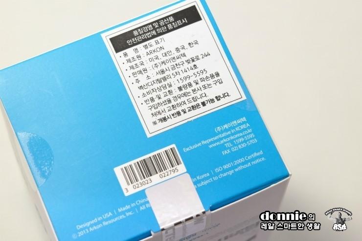 설명서가 별도로 들어 있지만 간단한 설치방법이 기존의 아콘 제품들과 달리 한글로 패키지에도 나와 있어 이 제품이 전략 제품임을 확인할 수 있죠. 1년 보증에 RoHS, WEEE, REACH 등의 인증마크도 확인할 수 있고 제조사인 아콘과 판매원인 케이엔씨텍의 정품 홀로그램 봉인 스티커가 상하단에 붙어 있습니다. 디자인은 미국, 제조국은 MADE IN CHINA 중국, 포장은 한국으로 진정한 다국적 제품입니다.