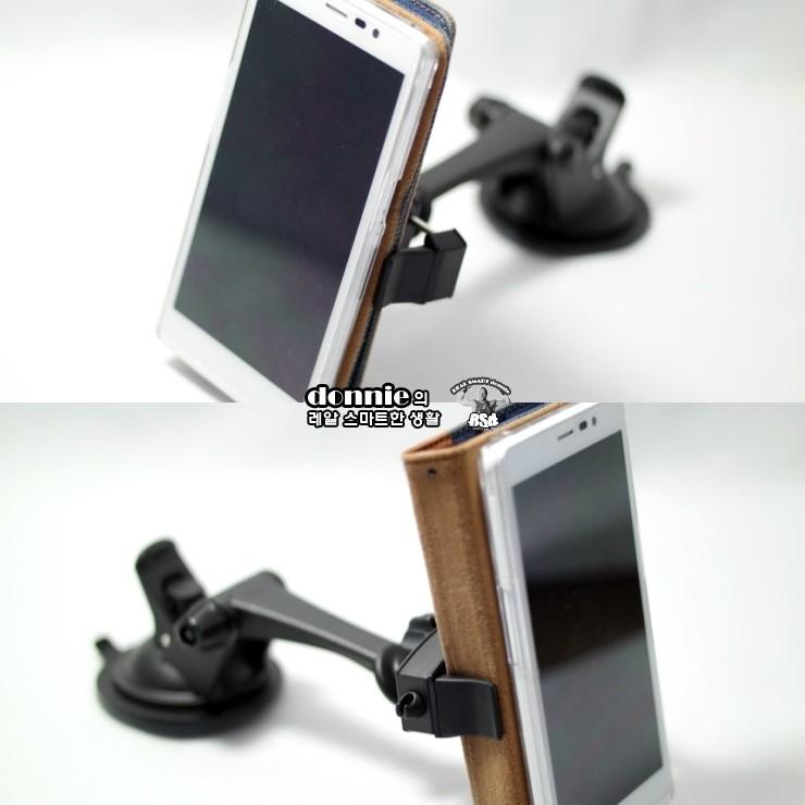 지지대의 깊이가 깊어 다이어리 케이스를 장착한 상태에서도 문제없이 거치가 가능합니다.