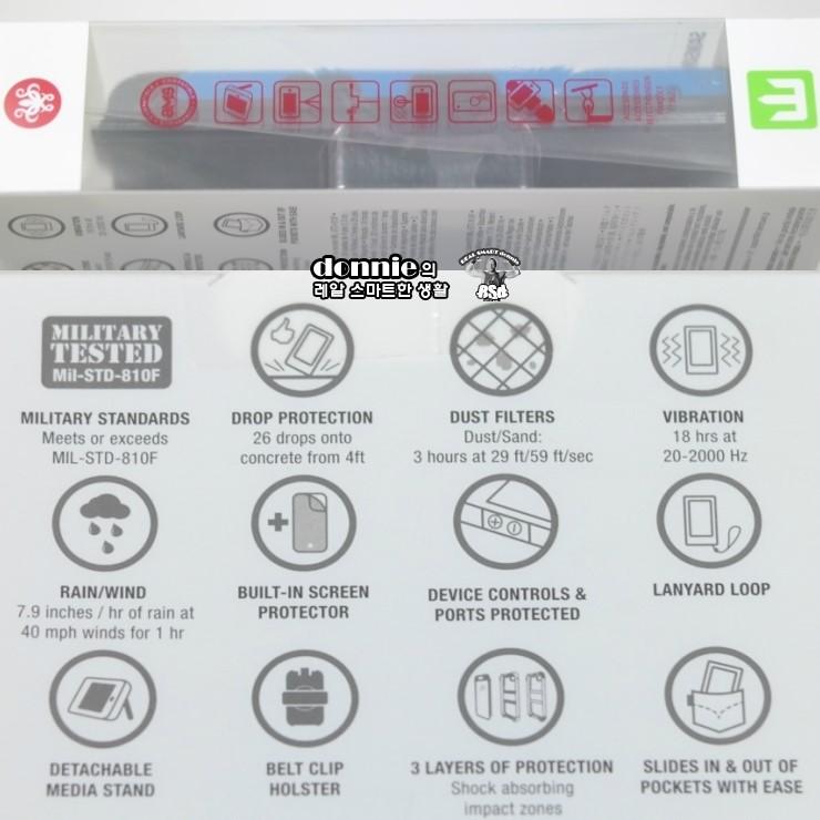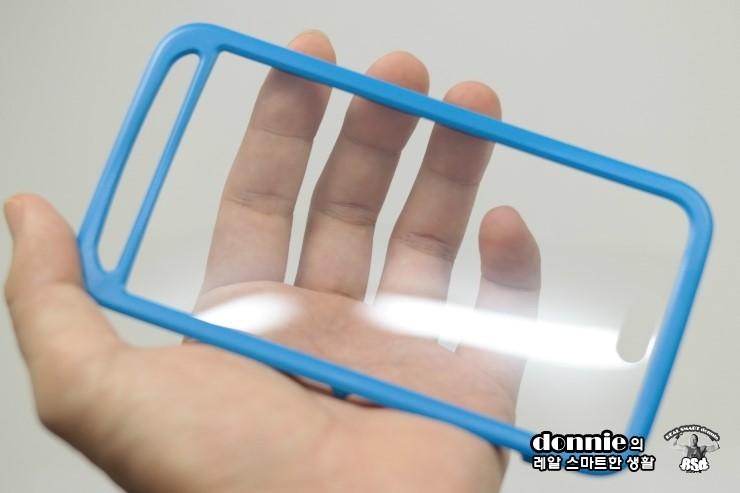 파란 부분은 케이스에서 요즘은 흔히 볼 수 있는 폴리카보네이트 재질인데 강화유리보다 150배의 충격을 견디기에 TPE와 더불어 어떠한 충격에도 완벽하게 내부를 보호해준다고 하네요.