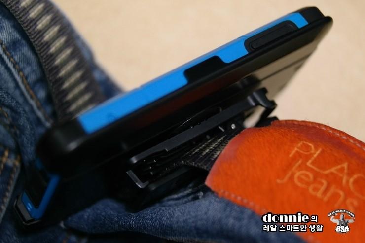 벨트클립(HOLSTER)이 기본으로 끼워져 있는데 분리하면 내부가 신소재라고 하는 TPE로 덮혀 있어 장착시 스마트폰 액정을 충격으로부터 보호해줍니다. 뒷면으로는 부착이 안되고 스마트폰 전면쪽으로만 부착이 가능합니다.