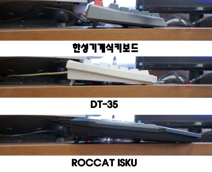 3가지 키보드의 높이 조절 모습입니다.