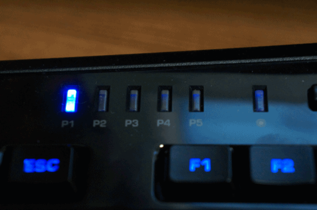 왼쪽상단엔 프로파일 LED와 매크로 녹화버튼이 있습니다.