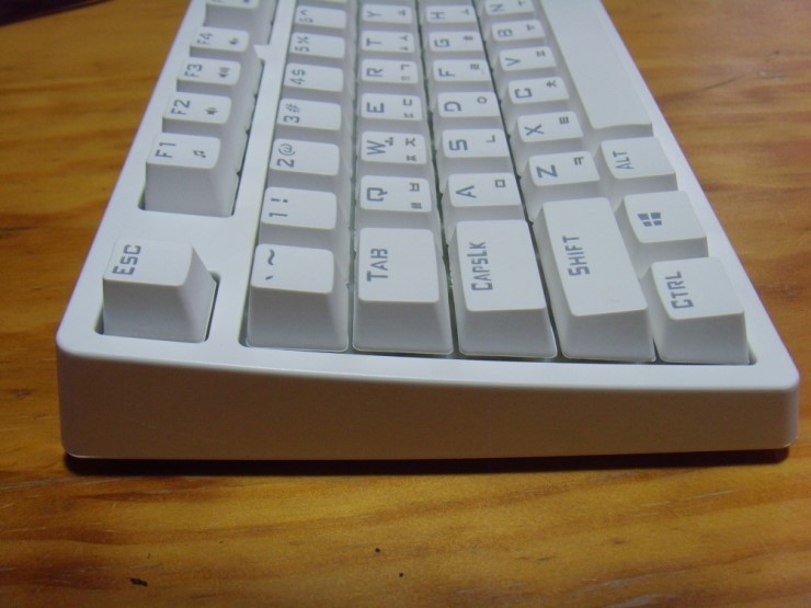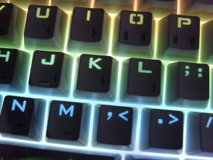 키캡의 영문 각인이 LED를 투영하여 플라스틱을 이중으로 사출하는 주조로 영문 각인이 지워지지 않는