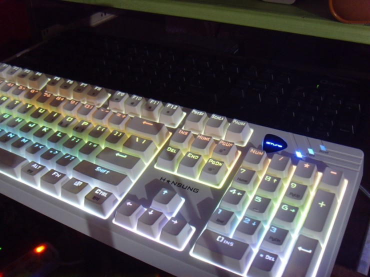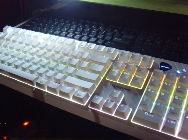 어두운 곳에서도 타이핑이 가능한 지워지지 않는 LED 투영 이색사출 키캡적용.