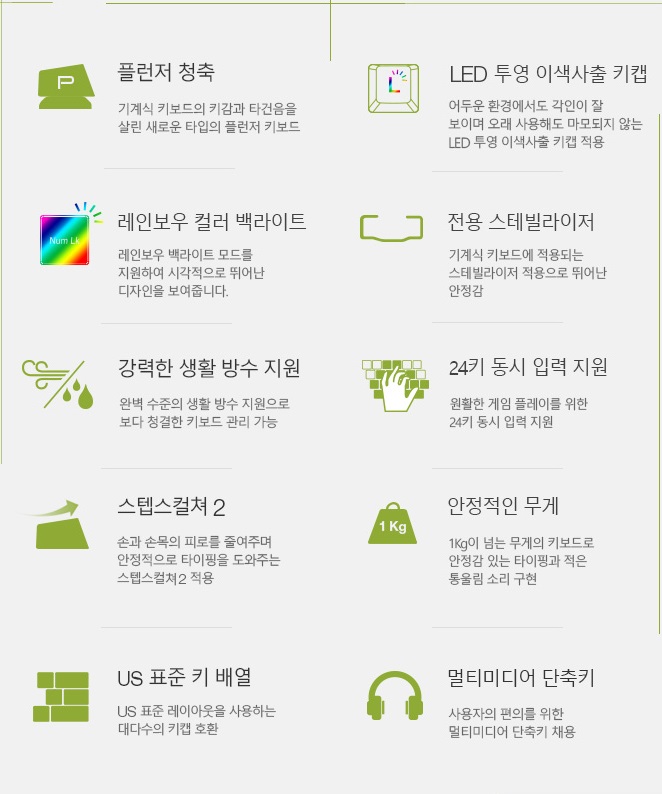뛰어난 안정감의 기계식 키보드에만 적용되는 스테빌라이저 적용.