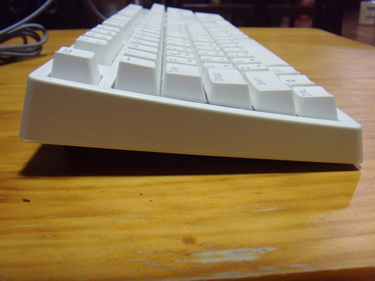 안정적으로 경쾌한 타이핑을 도와주기 위해 각 열마다 키의 각도를 다르게 하는 스텝스컬쳐2 적용.